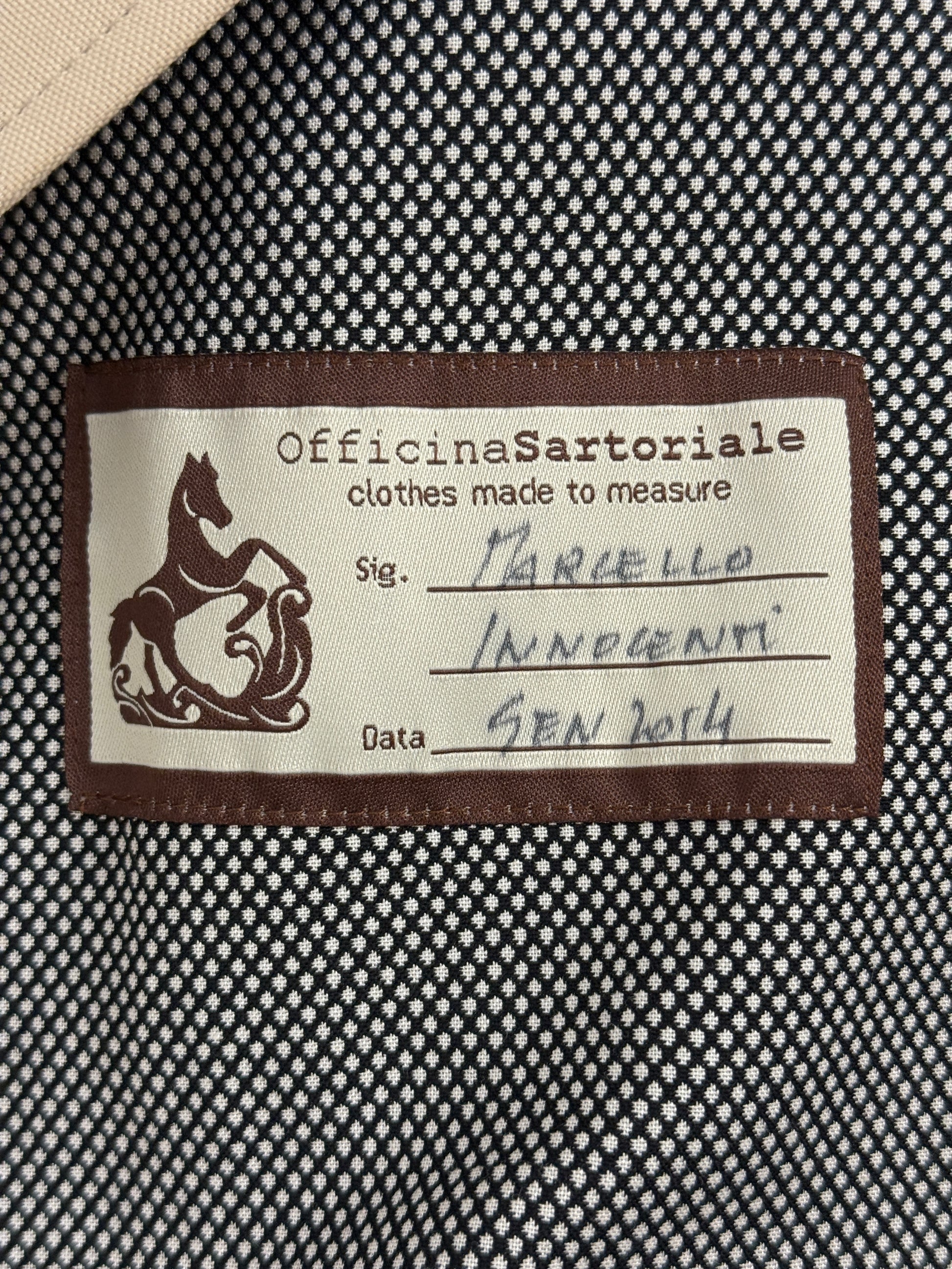 Cappotto sartoriale color beige sabbia, realizzato su misura da Officina Sartoriale