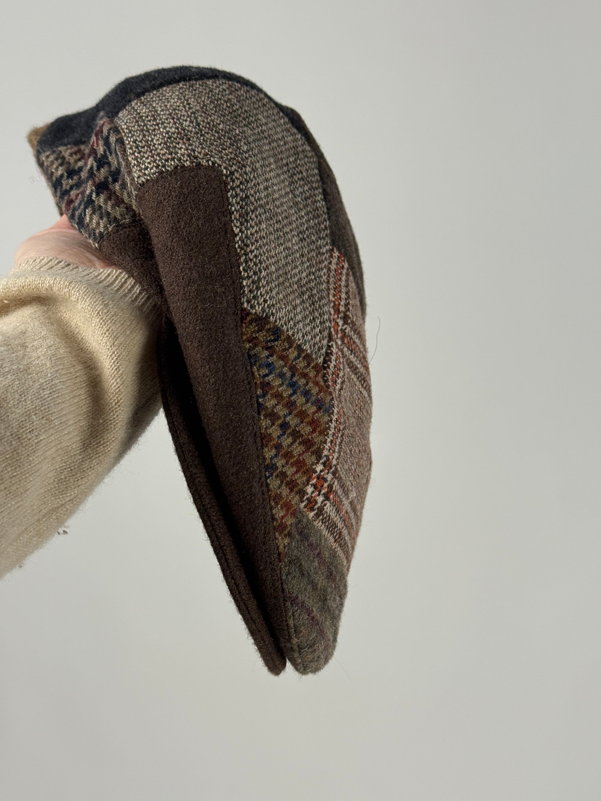 Lana patchwork, inserti diversi cuciti uno a uno e quell’effetto vissuto che solo i pezzi autentici regalano.