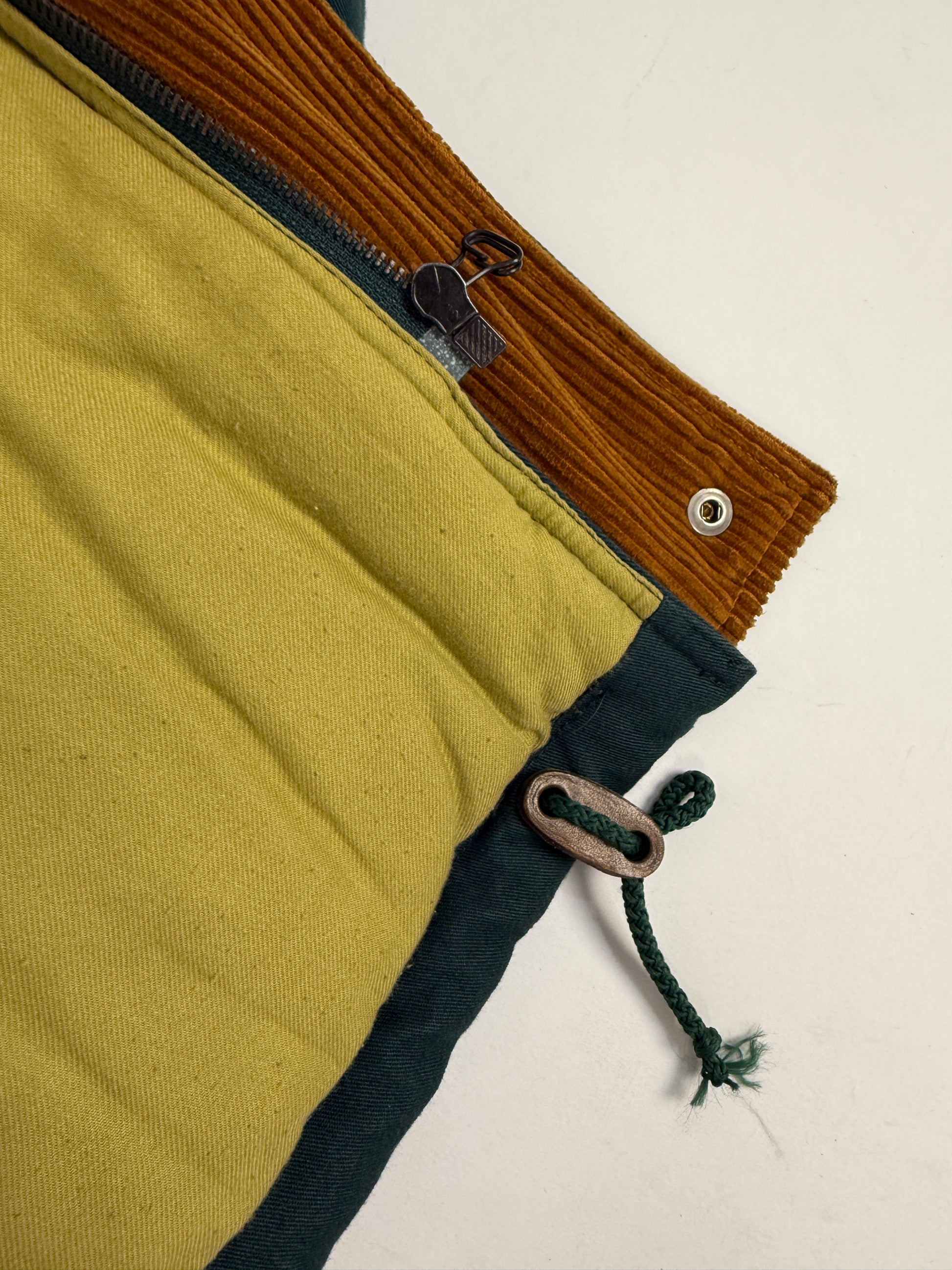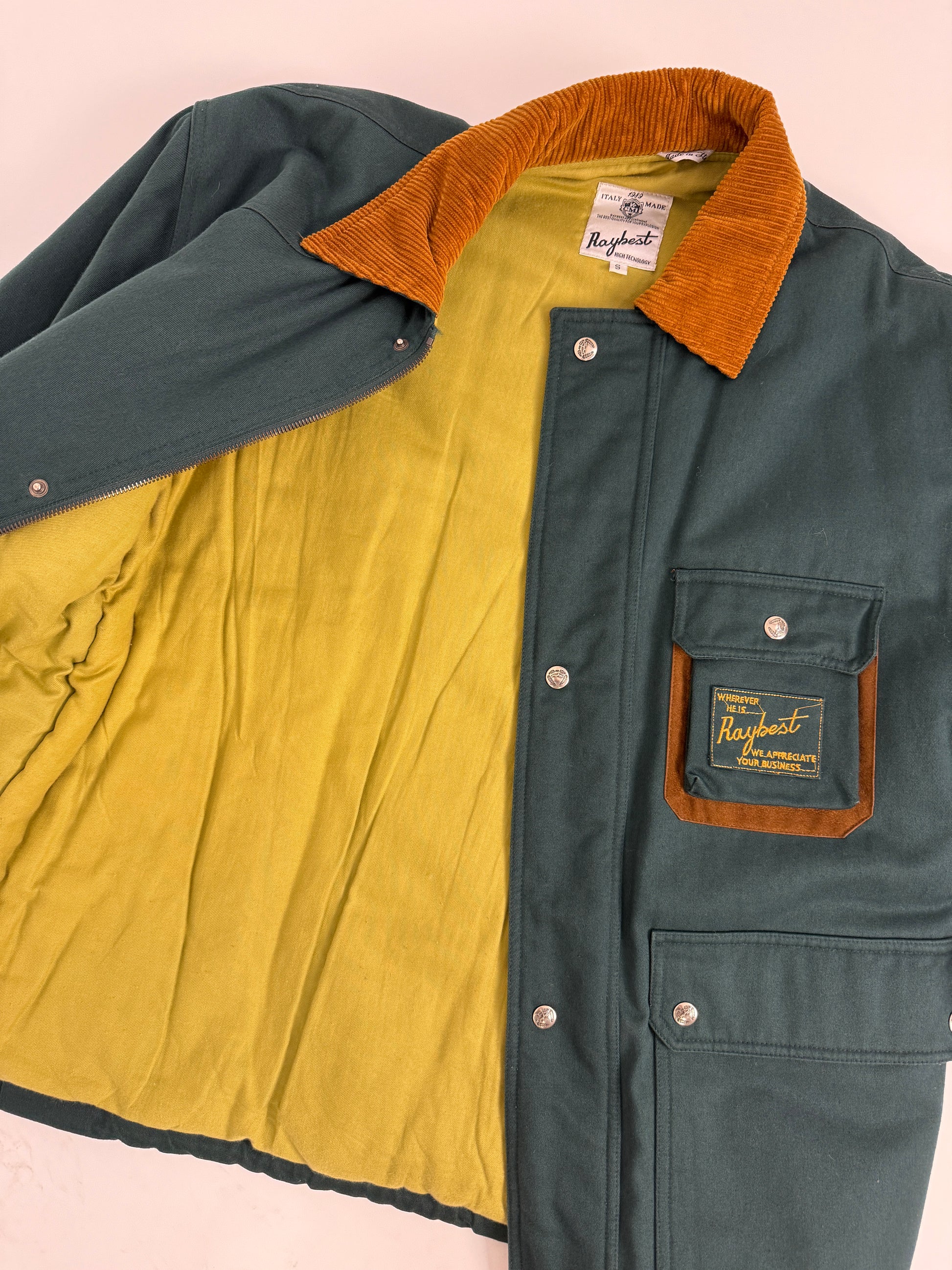 Questa Raybest Made in Italy si distingue per il suo collo in velluto a coste color ocra, il contrasto cromatico con il verde foresta del corpo e l’interno in viscosa giallo chiaro imbottito, che dona calore e comfort anche nelle giornate più fredde.