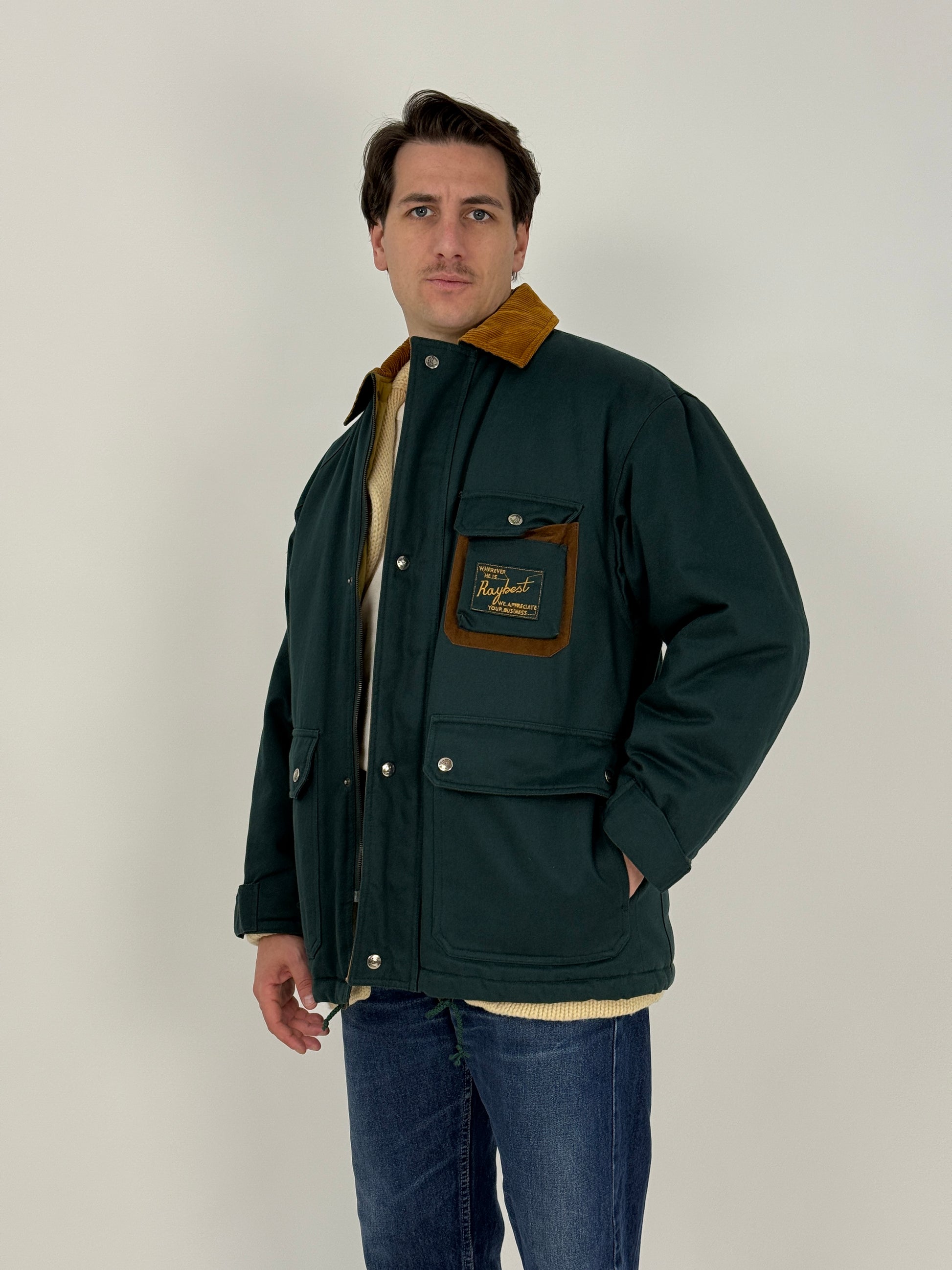 Una giacca che racconta la cultura del lavoro e dell’outdoor degli anni ’80, realizzata con materiali tecnici italiani di qualità.
