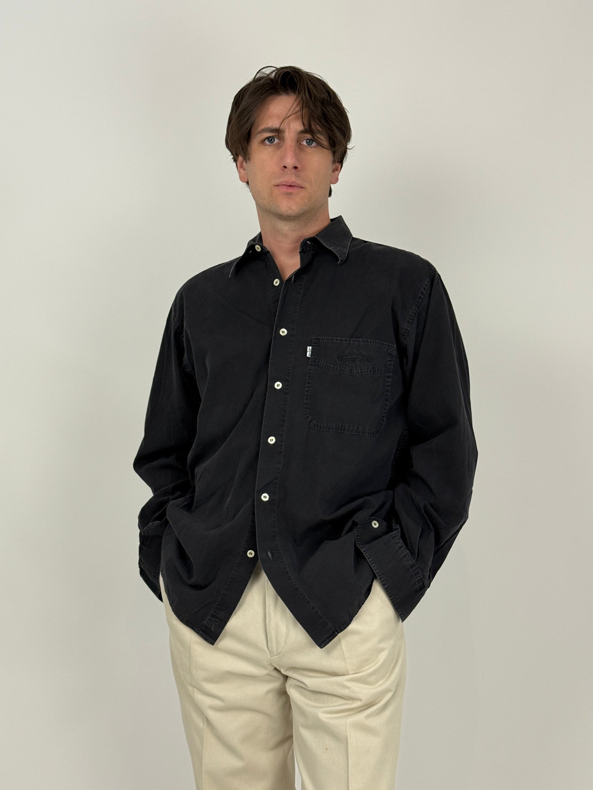 Realizzata in cotone fresco, manica lunga, classico colletto, abbottonatura frontale, 1 tasca con ricamo