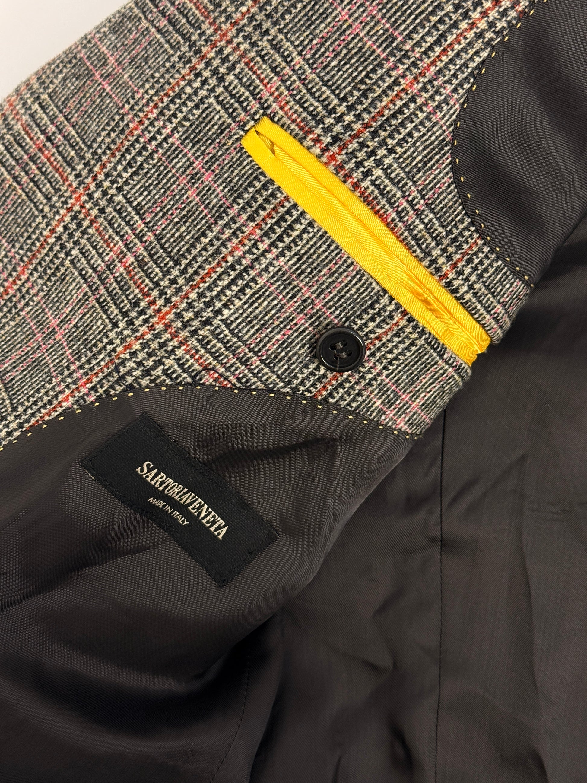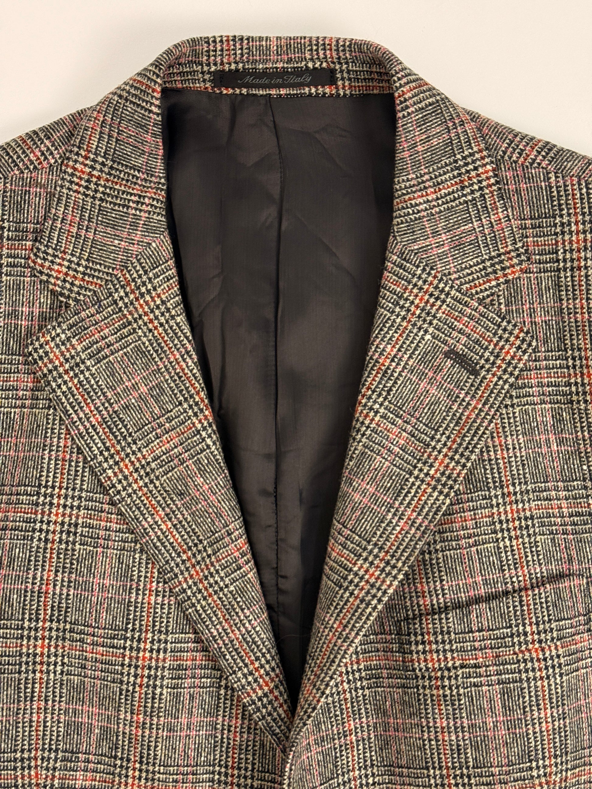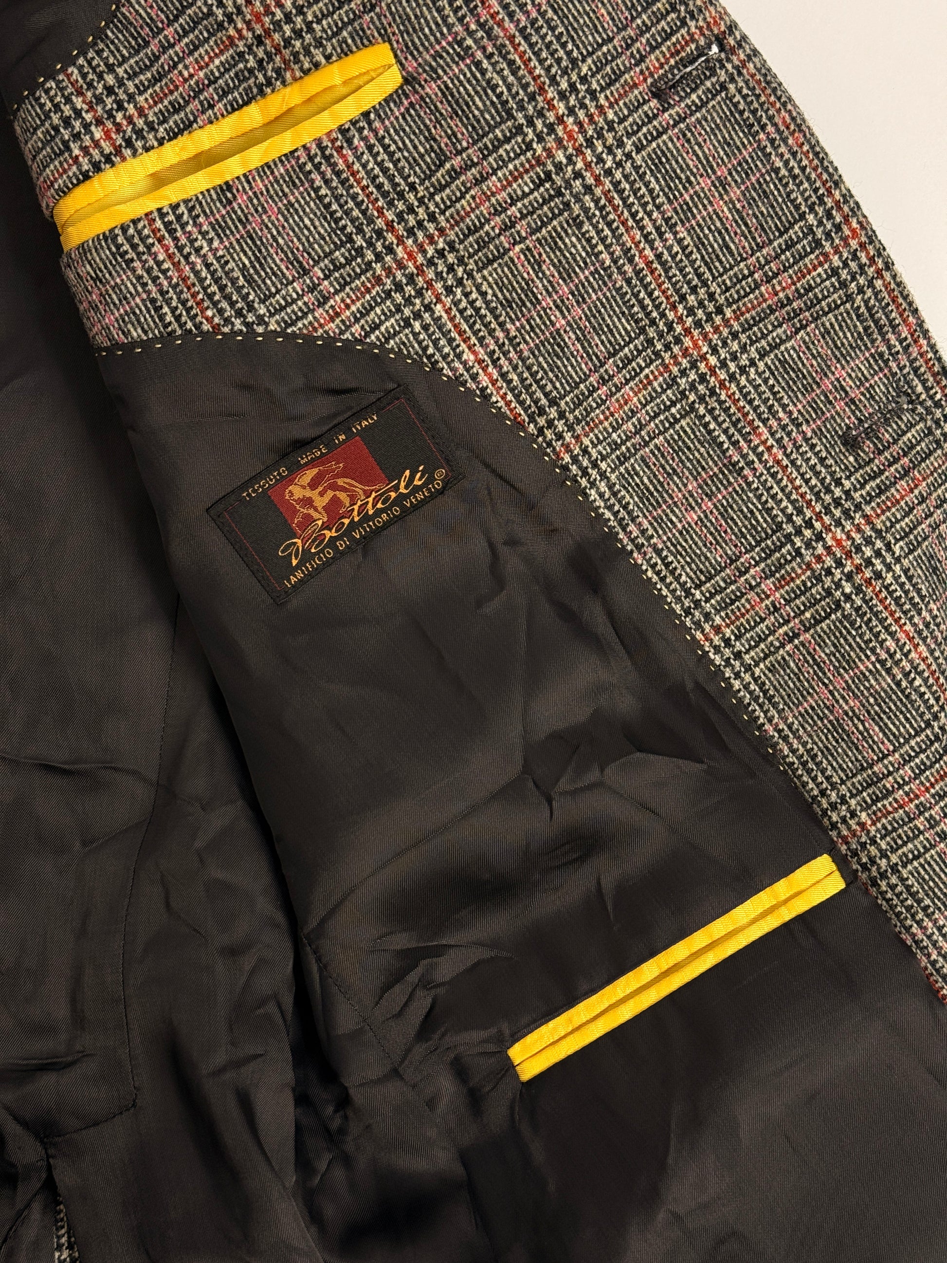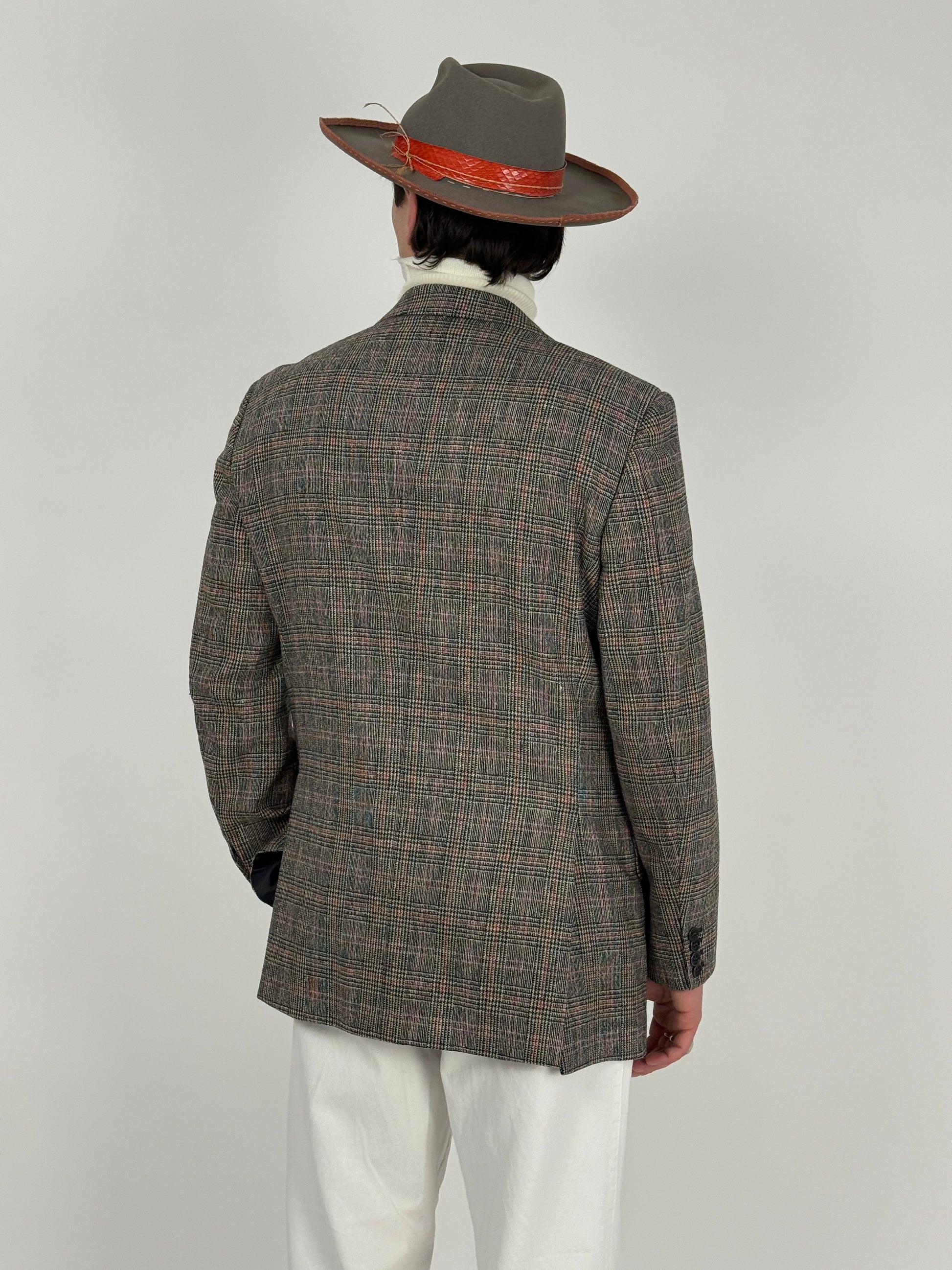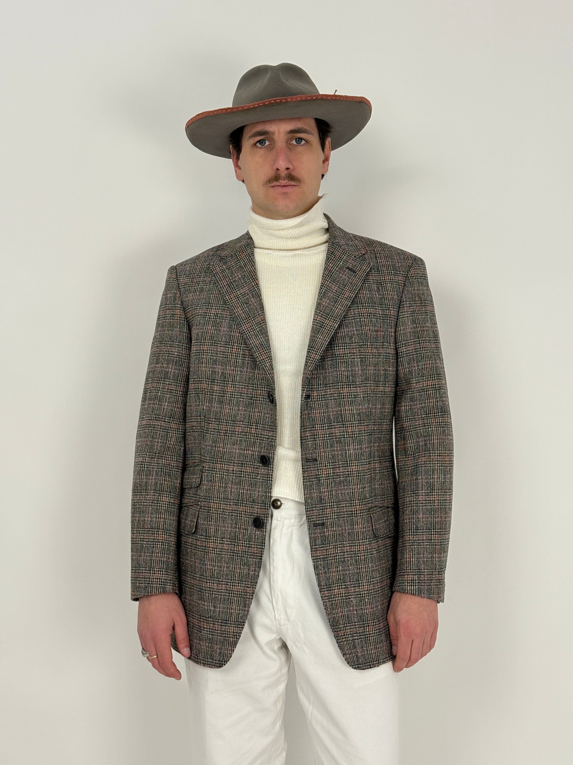 Un blazer vintage che parla la lingua delle sartorie venete dei primi anni ’80: taglio pulito, costruzione solida e quel classico Principe di Galles che non stanca mai.