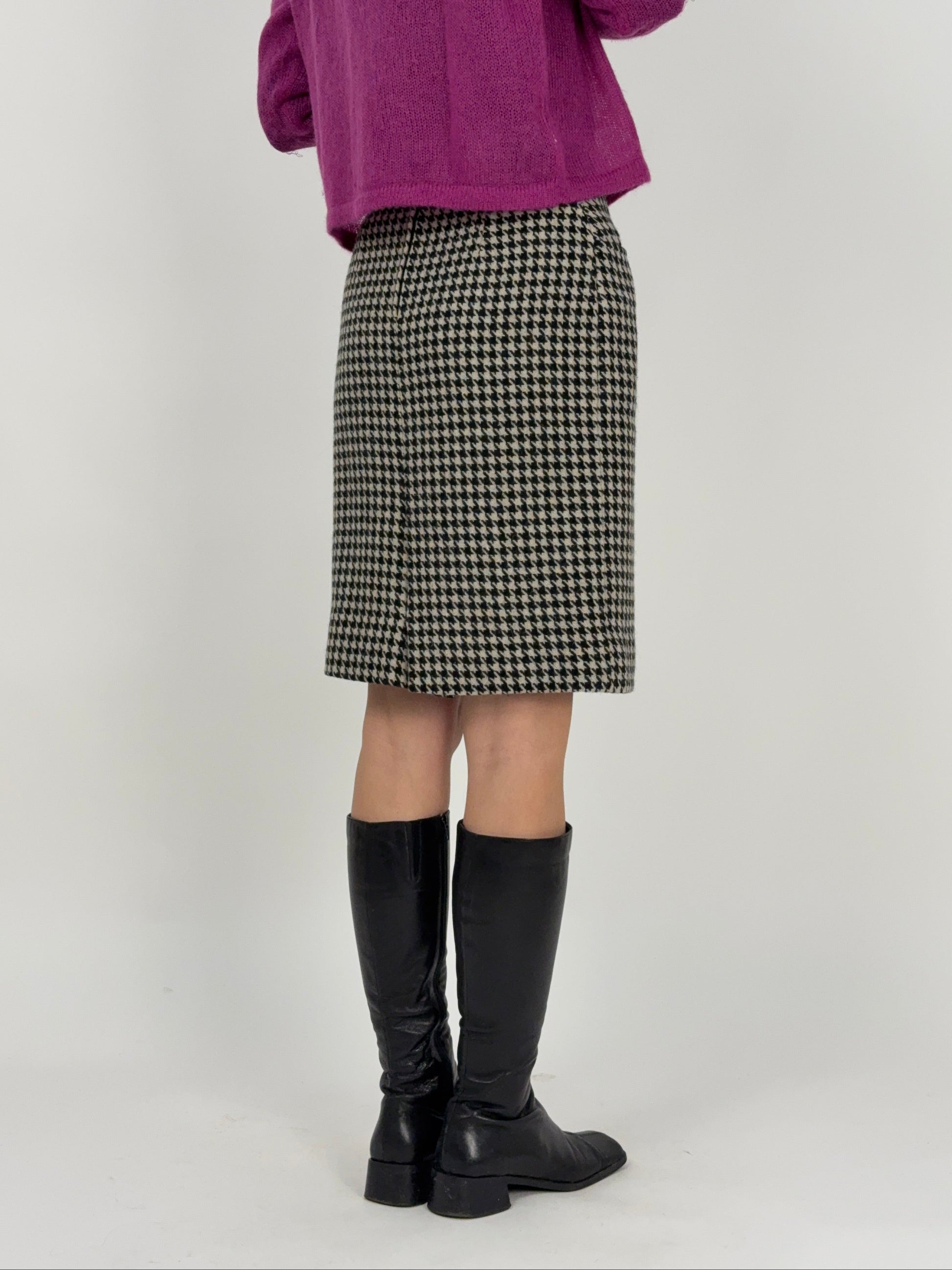Gonna midi sartoriale in lana pied de poule