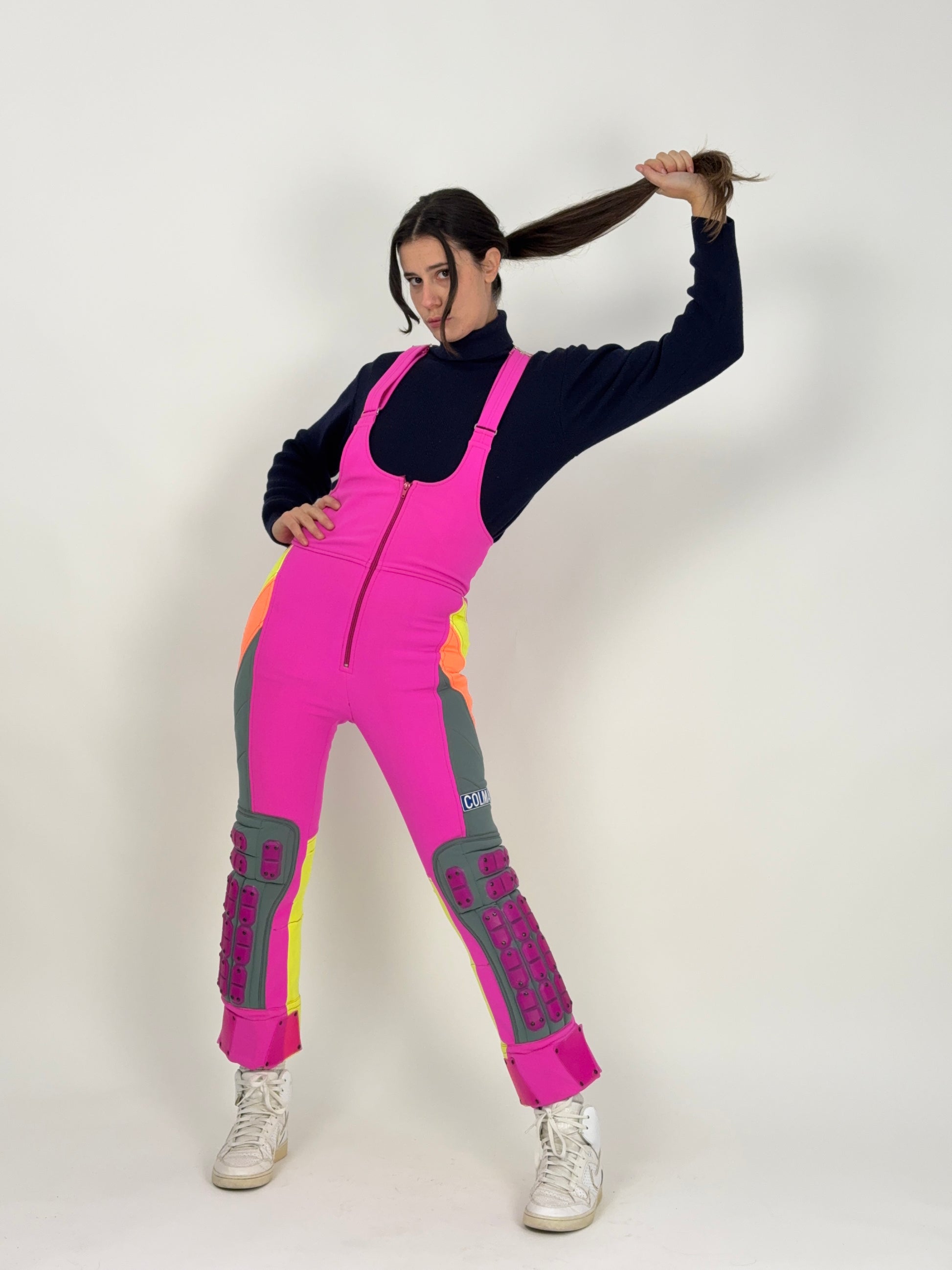 Questa tuta da sci Colmar anni ’90, modello da gara “Sci Italia Pool”, è un pezzo d’archivio autentico che racchiude tutta la grinta e i colori delle piste di quell’epoca.