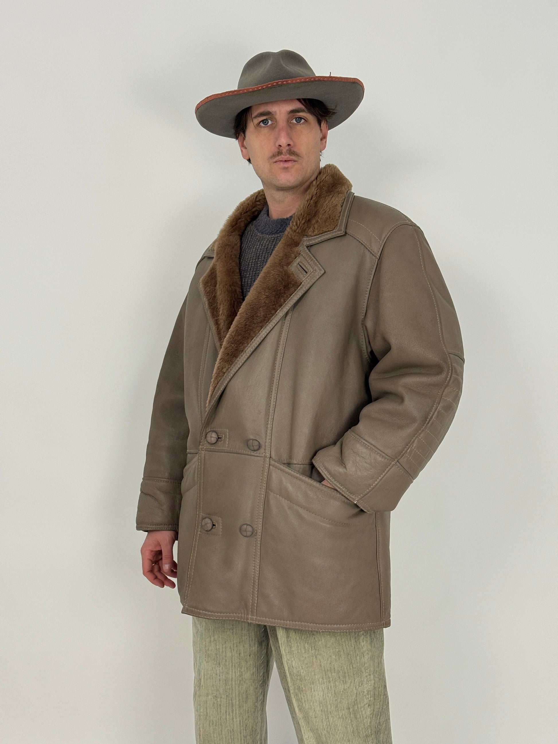 Questo cappotto vintage in shearling originale è realizzato in vera pelle di agnello con interno in montone naturale, una delle combinazioni più iconiche e resistenti della moda anni ’80.