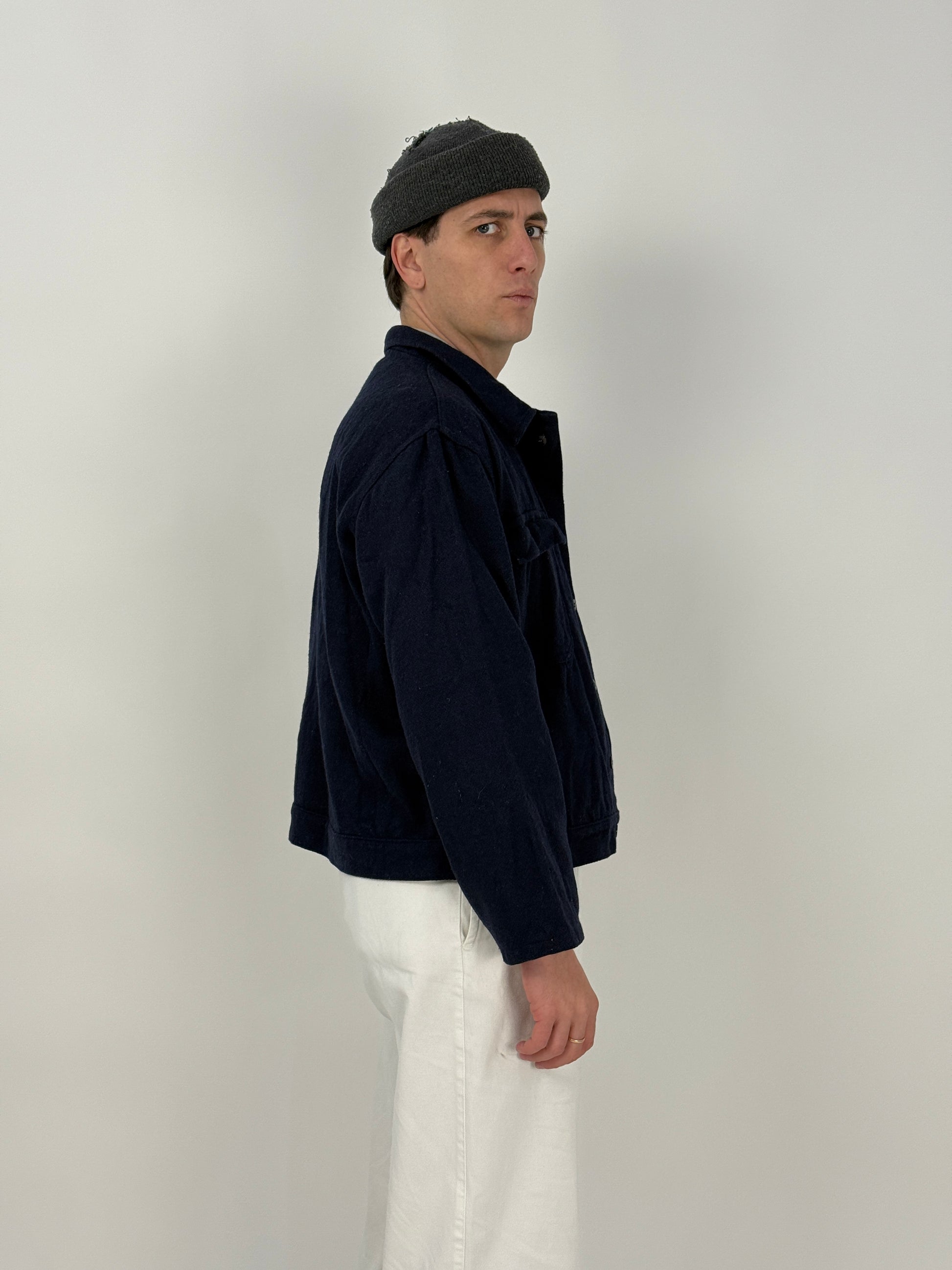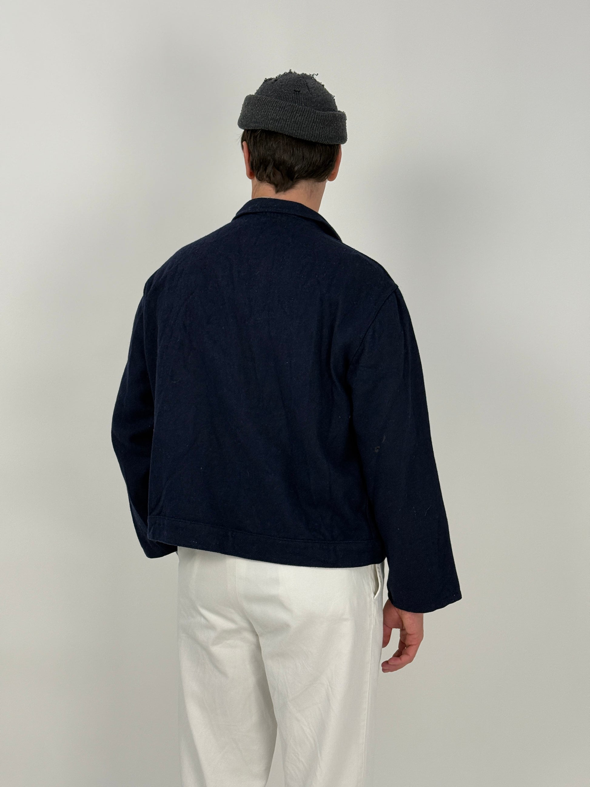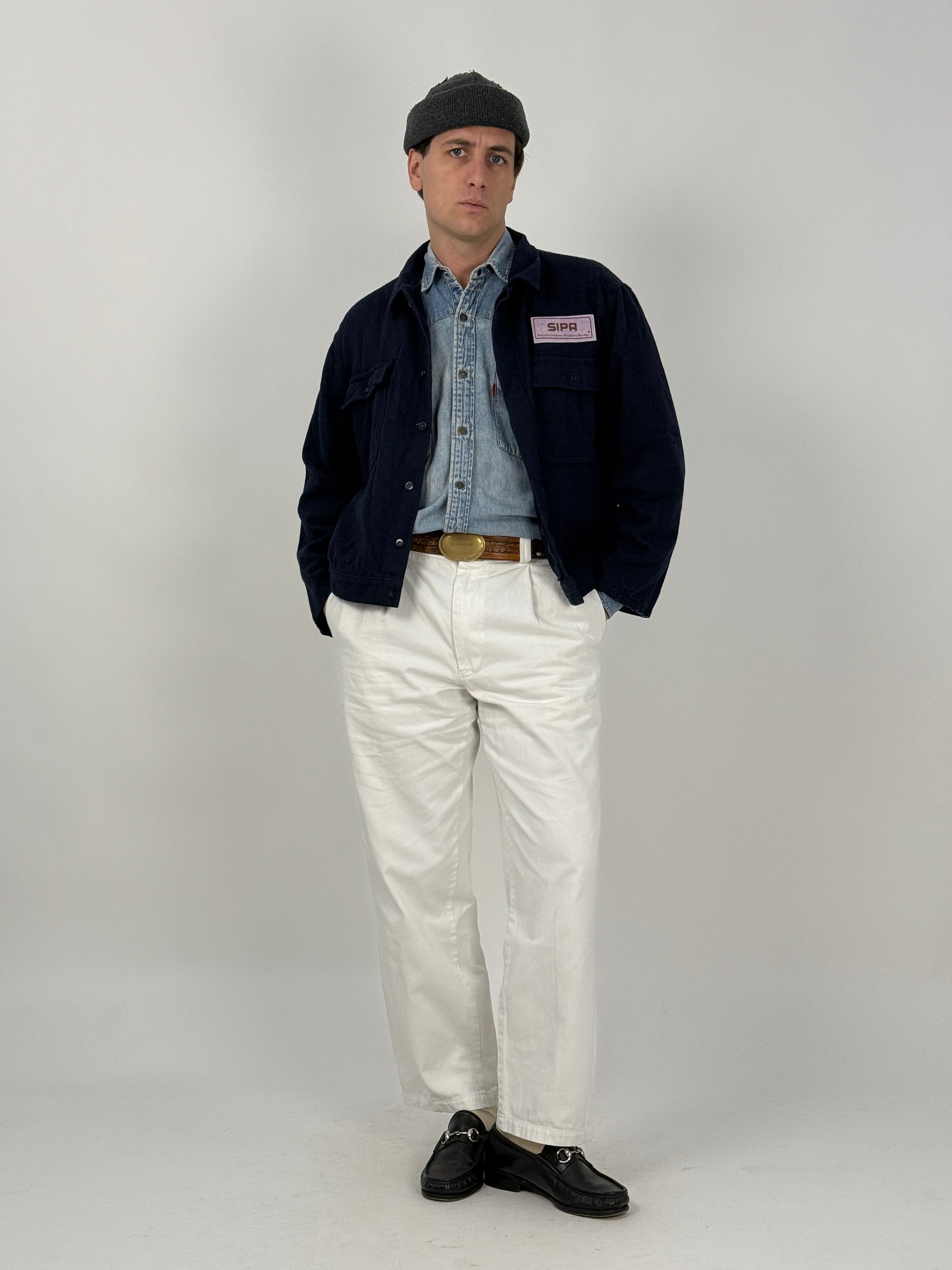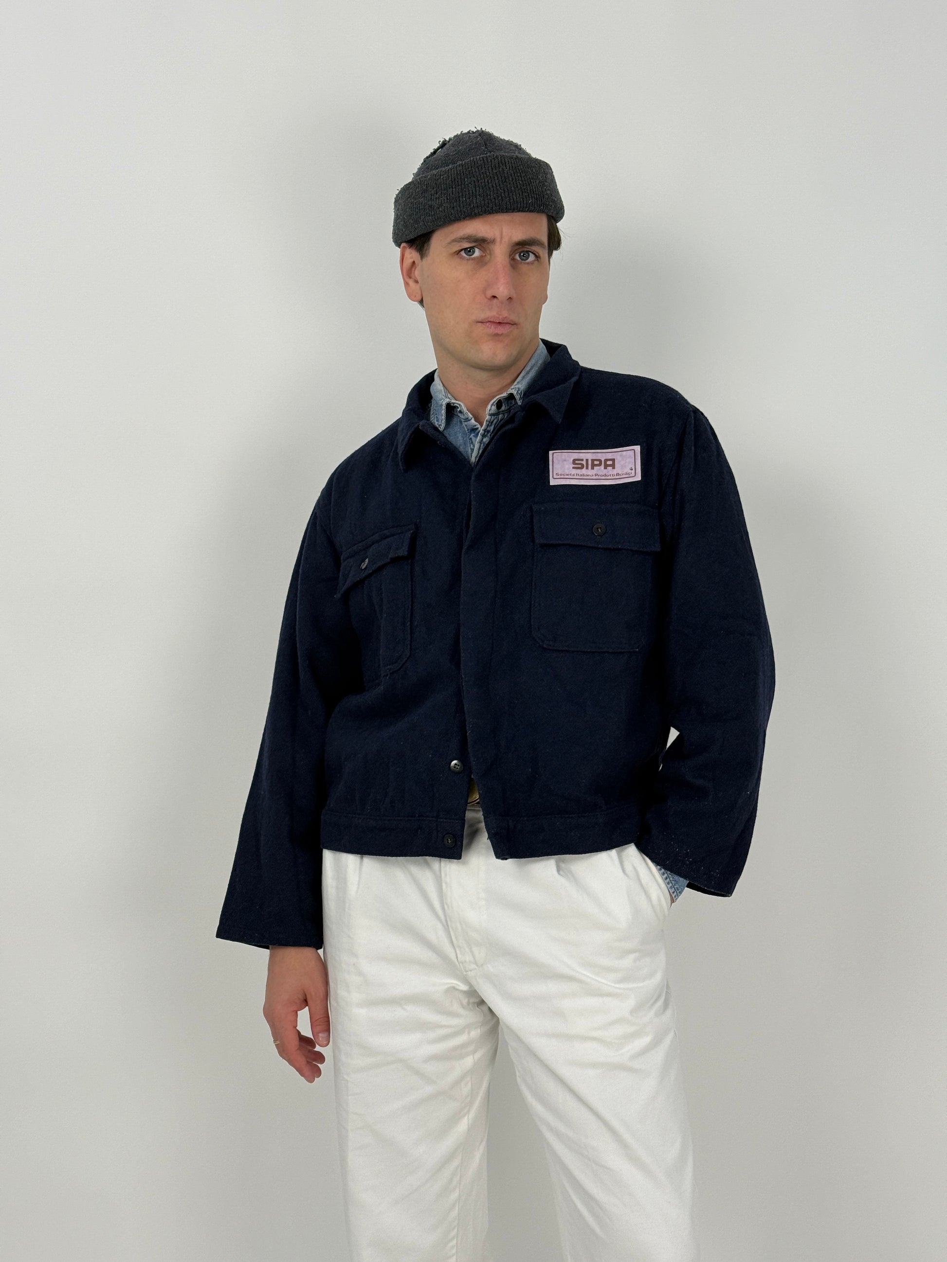 Un pezzo autentico di storia del workwear italiano, questa giacca SIPA rappresenta l’equilibrio perfetto tra funzionalità e stile.Realizzata in lana pesante blu navy, è un capo pensato per durare nel tempo e accompagnare chi la indossa con carattere e autenticità.
