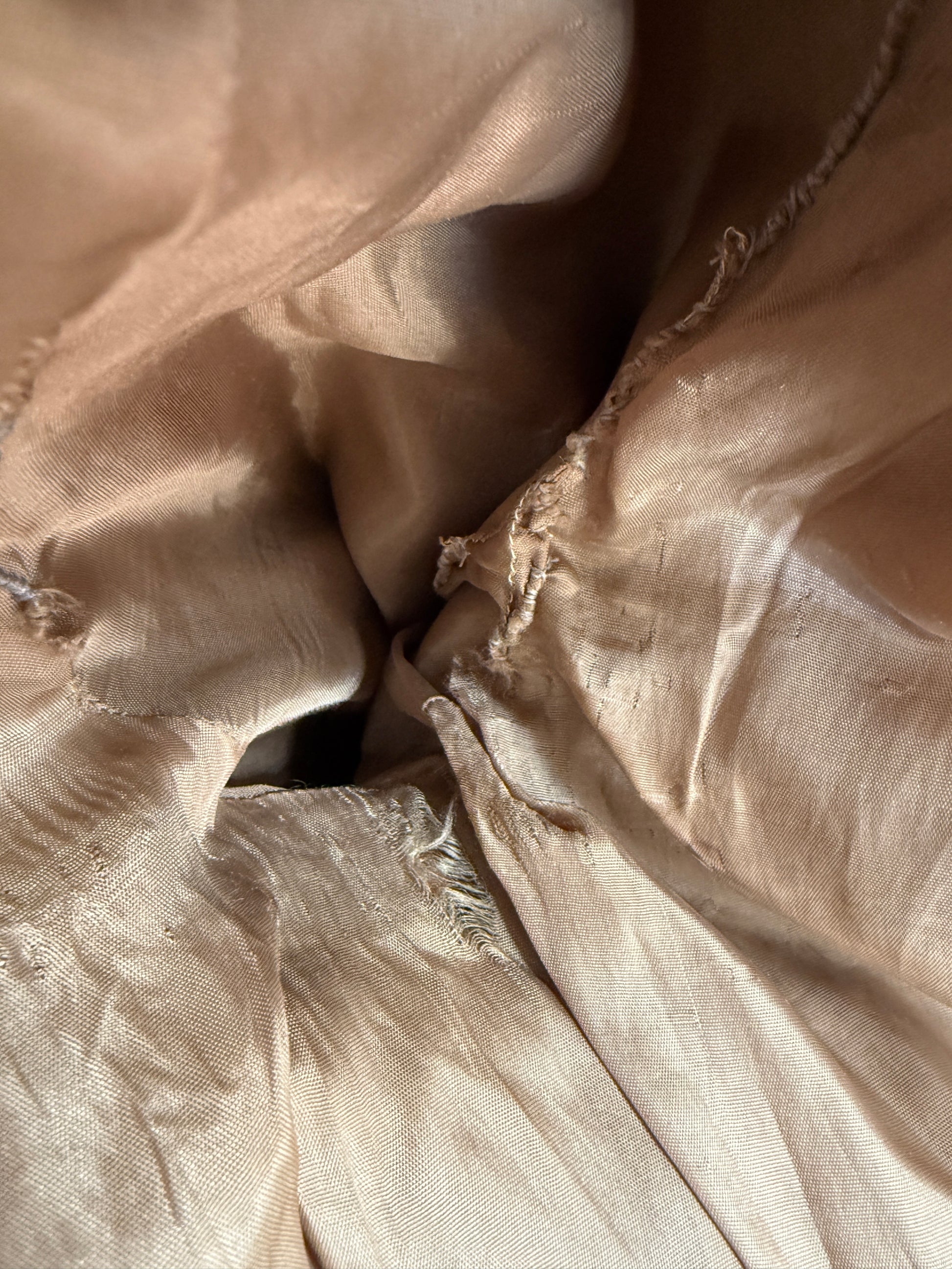 Buone condizioni, segni del tempo sulla pelle e una naturale patina del camoscio, che aggiunge carattere e autenticità al capo. Sul retro destro, una lieve riga di penna sulla spalla, poco visibile, ma presente.
