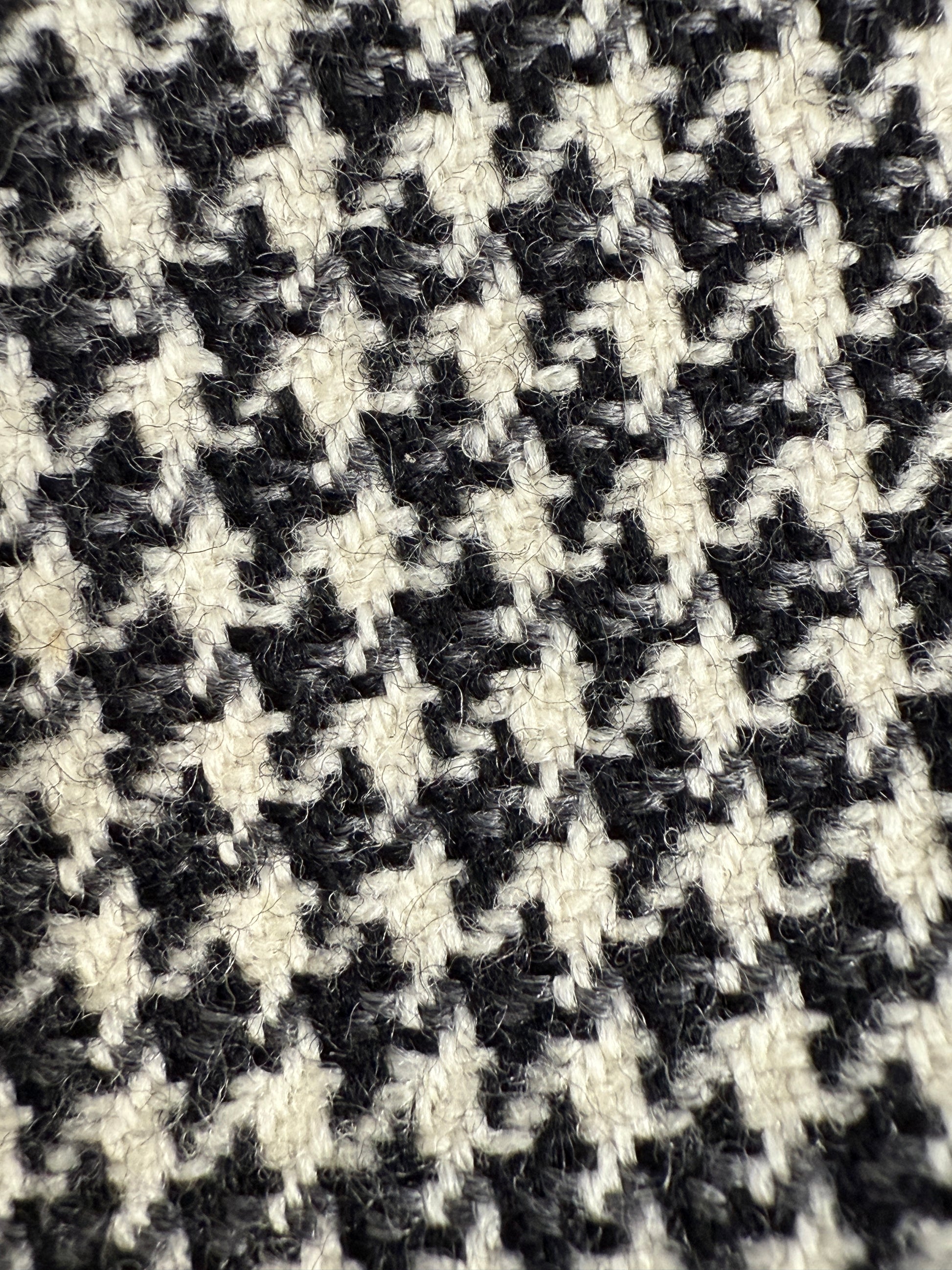 Una di quelle giacche che appena la tocchi capisci subito la qualità: lana corposa, mano morbida grazie al cashmere e un pied de poule bianco/nero che non passa mai.