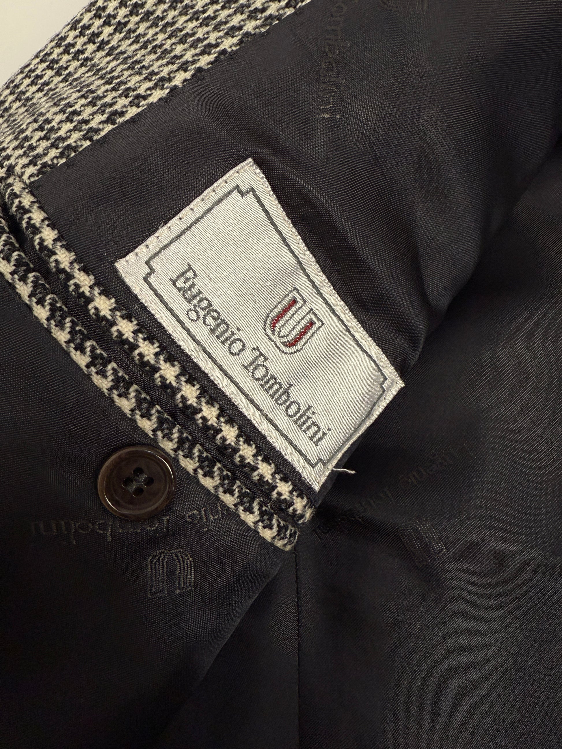 Questa giacca vintage firmata Eugenio Tombolini, confezionata con il prestigioso tessuto del Lanificio F.lli Maria Zegna (Trivero), rappresenta l’eleganza italiana di fine anni ’80 / primi ’90.