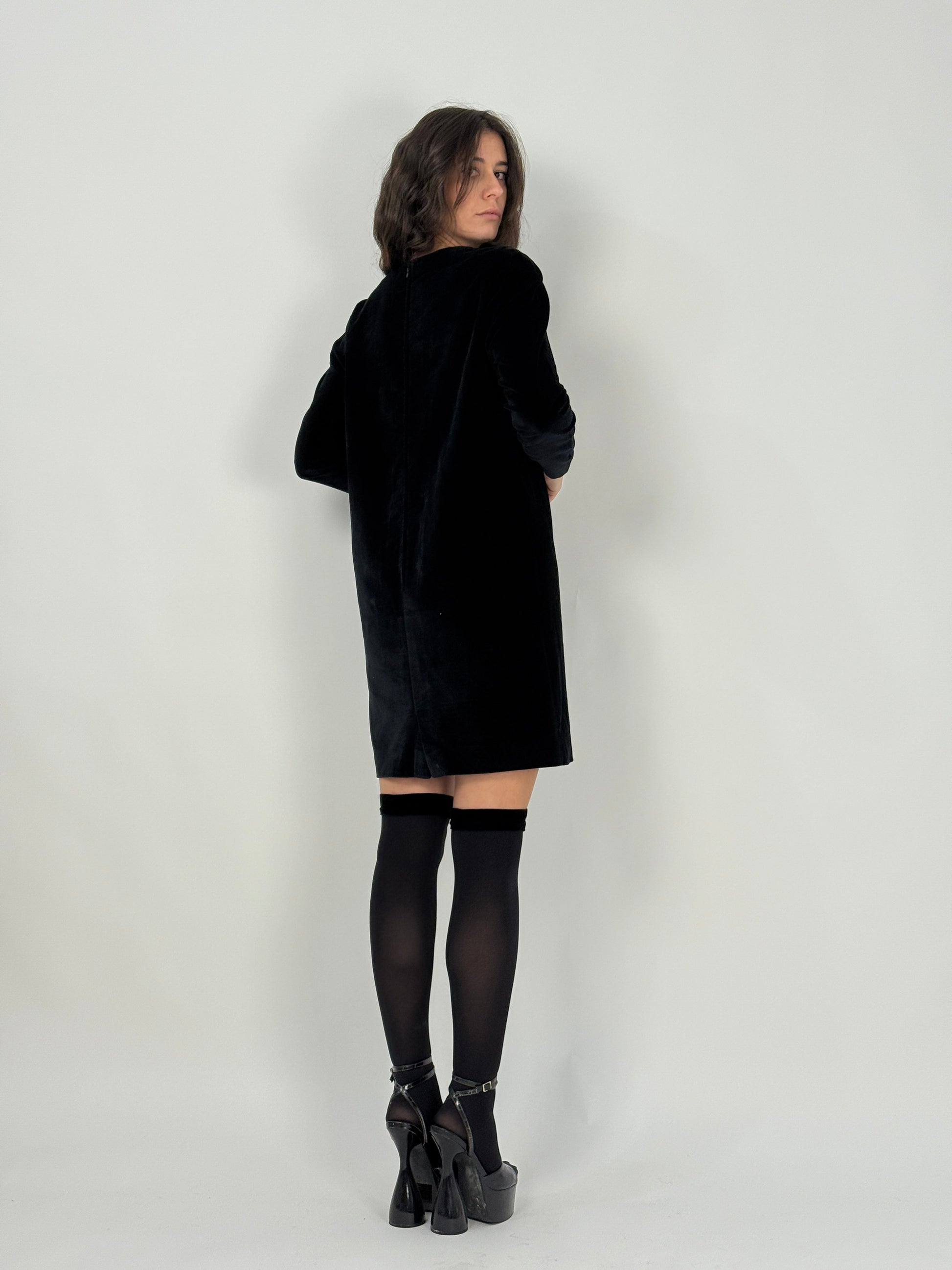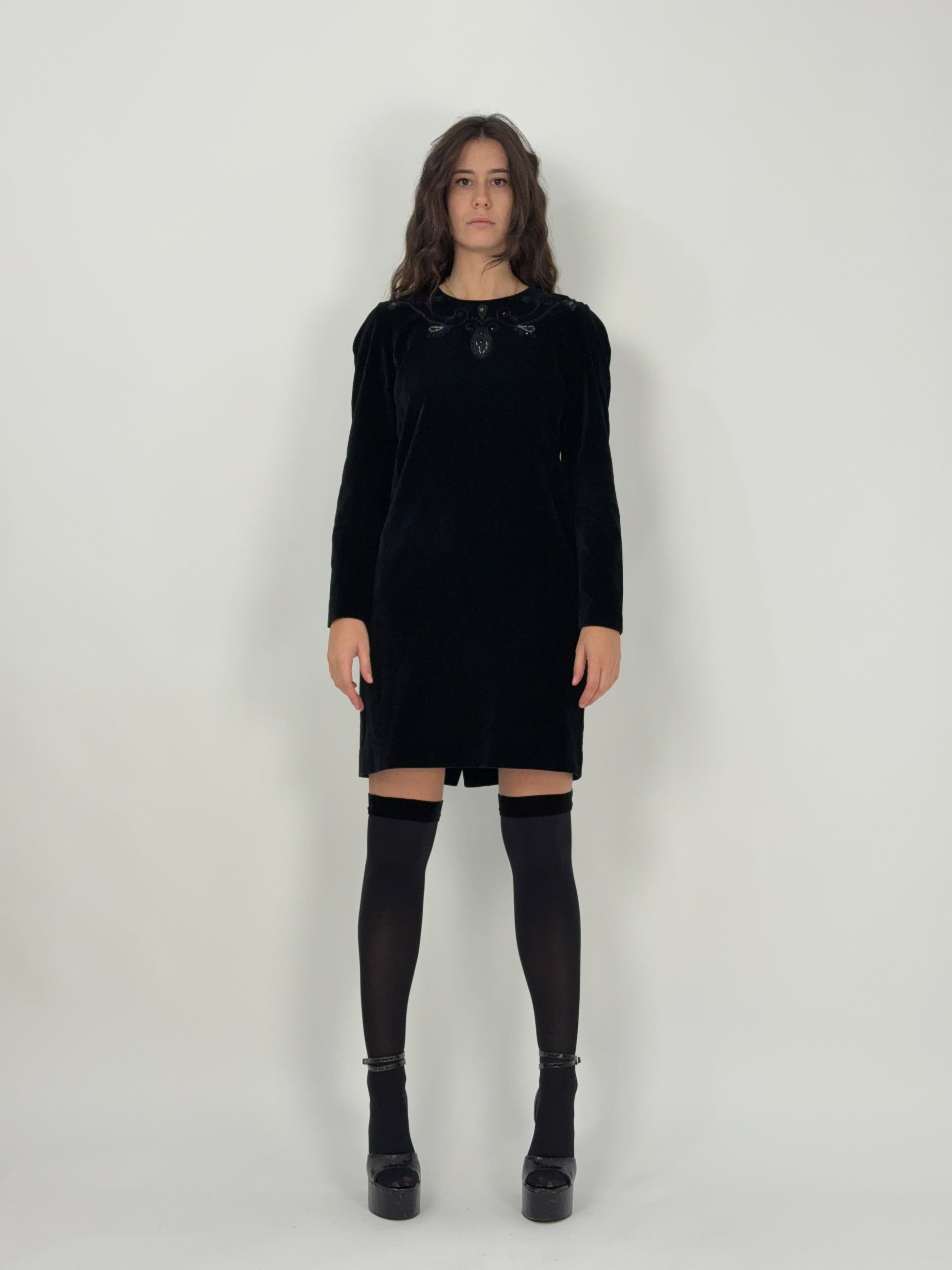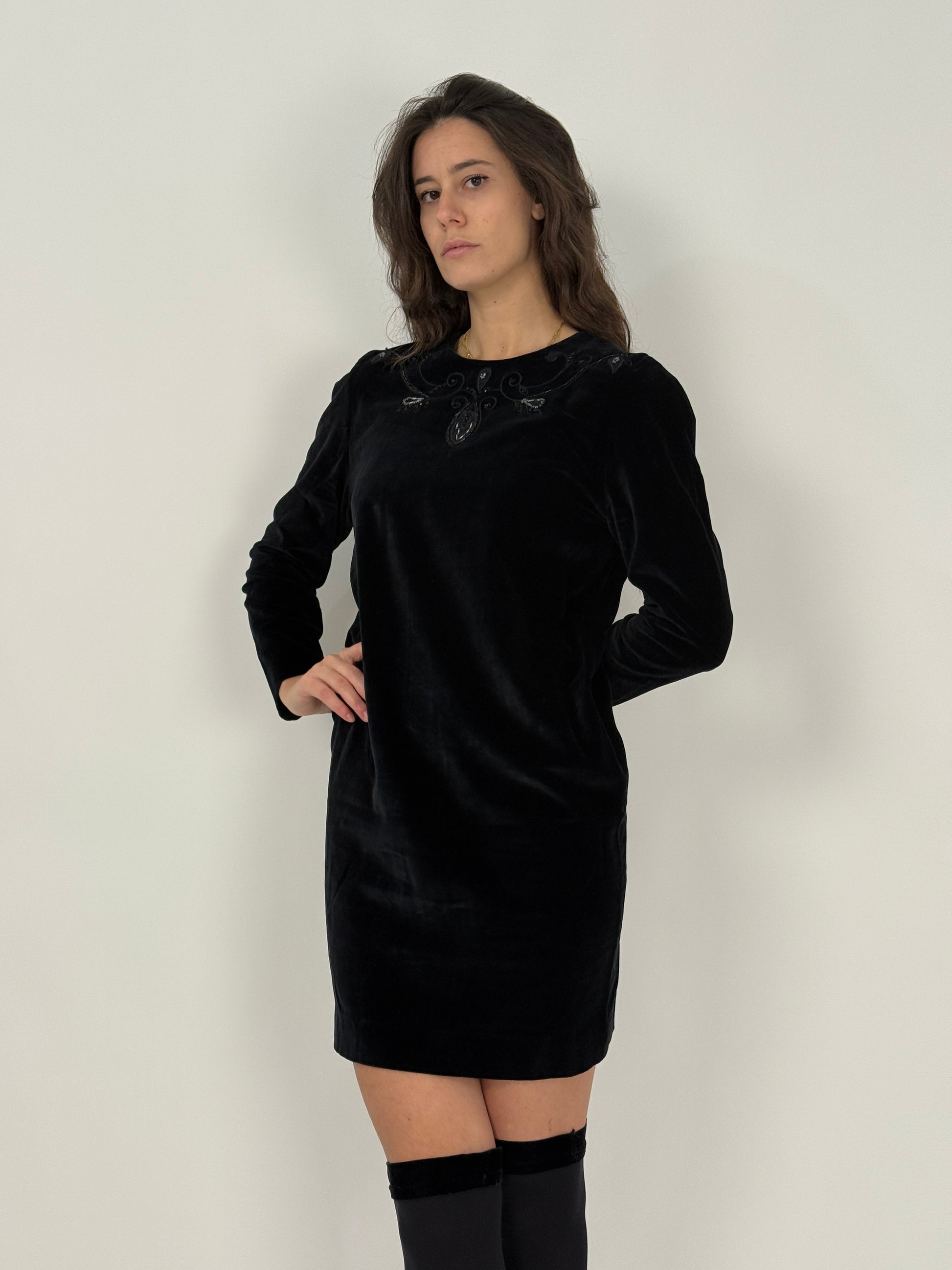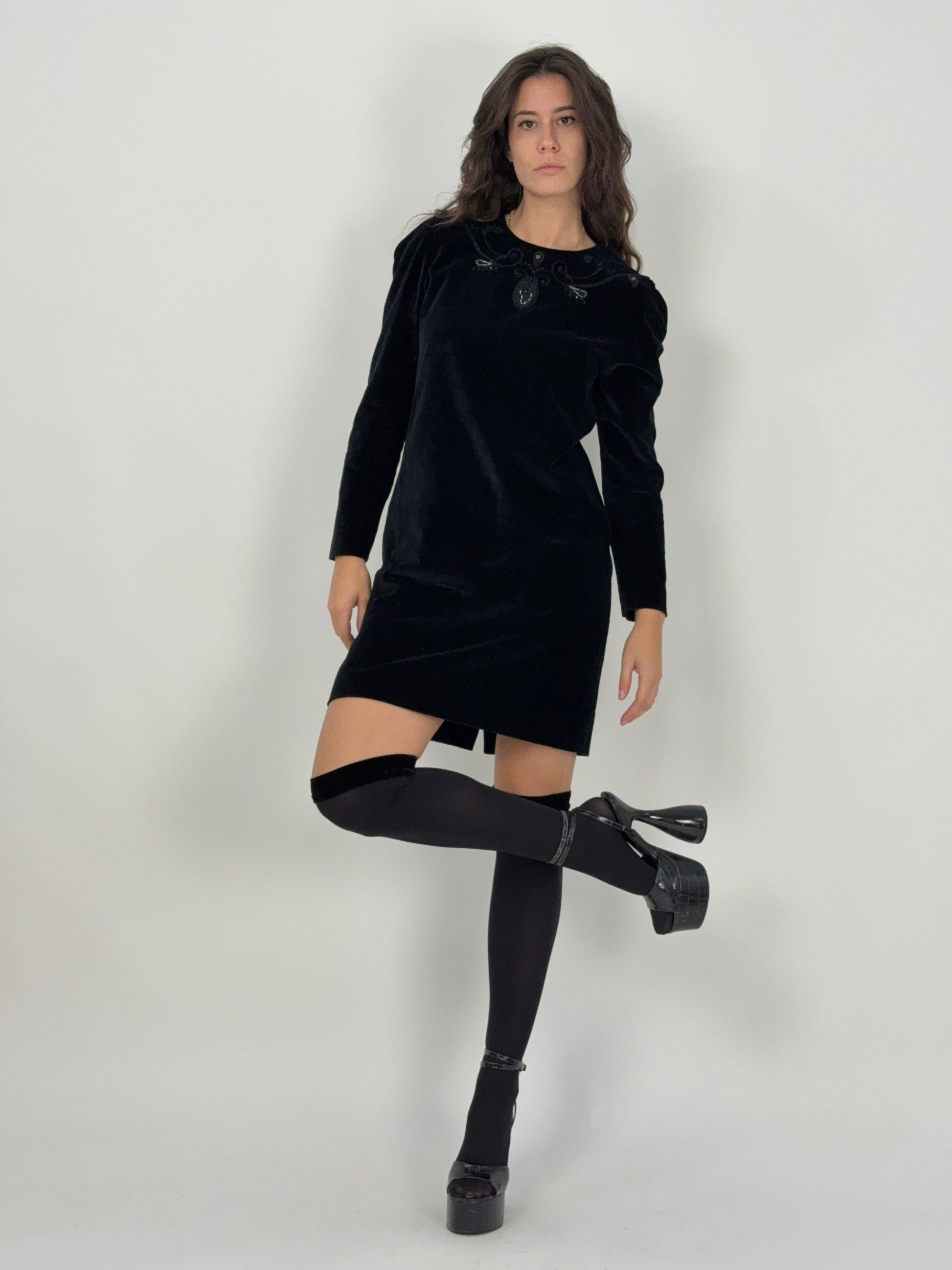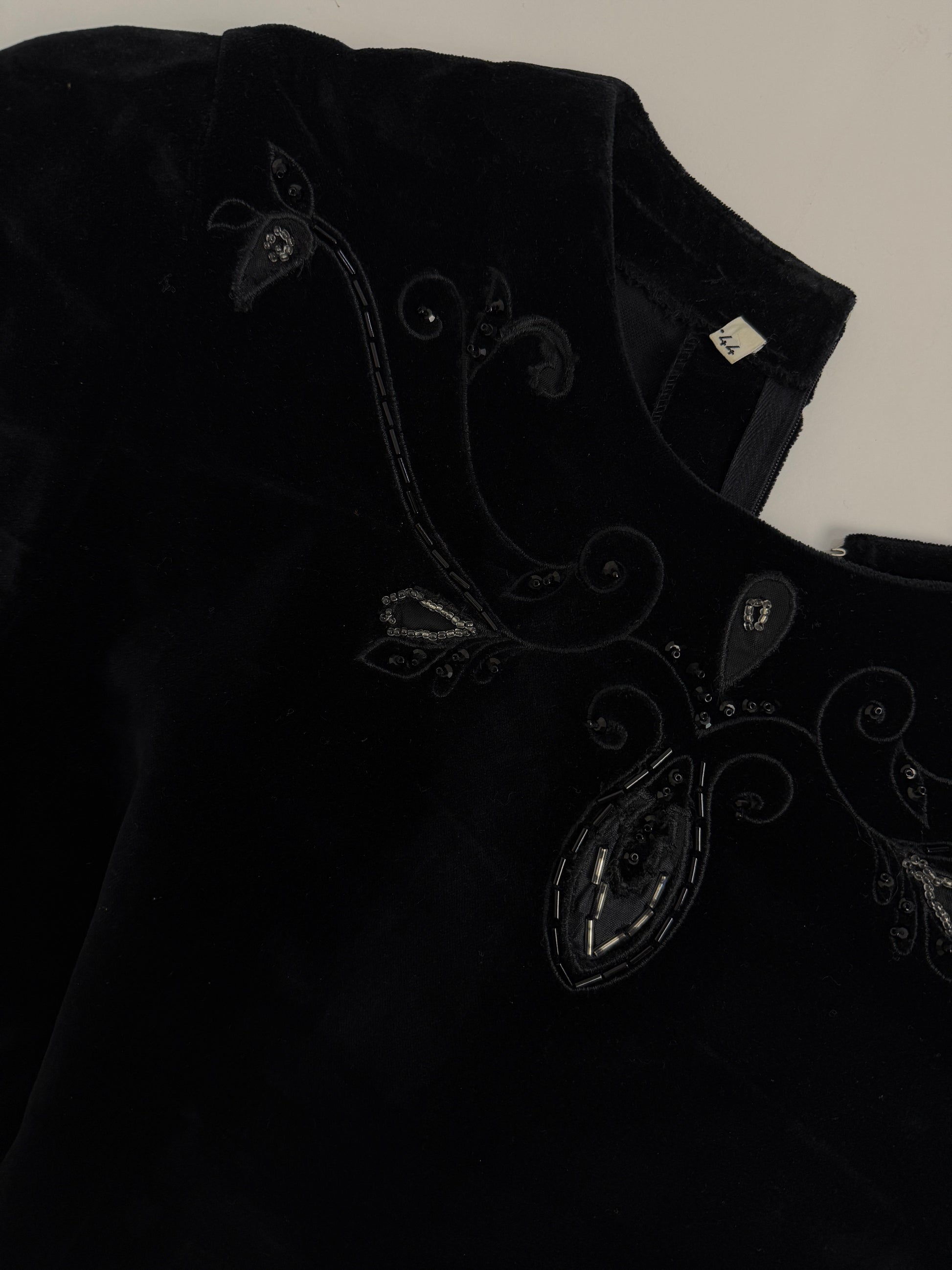 Abito corto in velluto e perline anni '70
