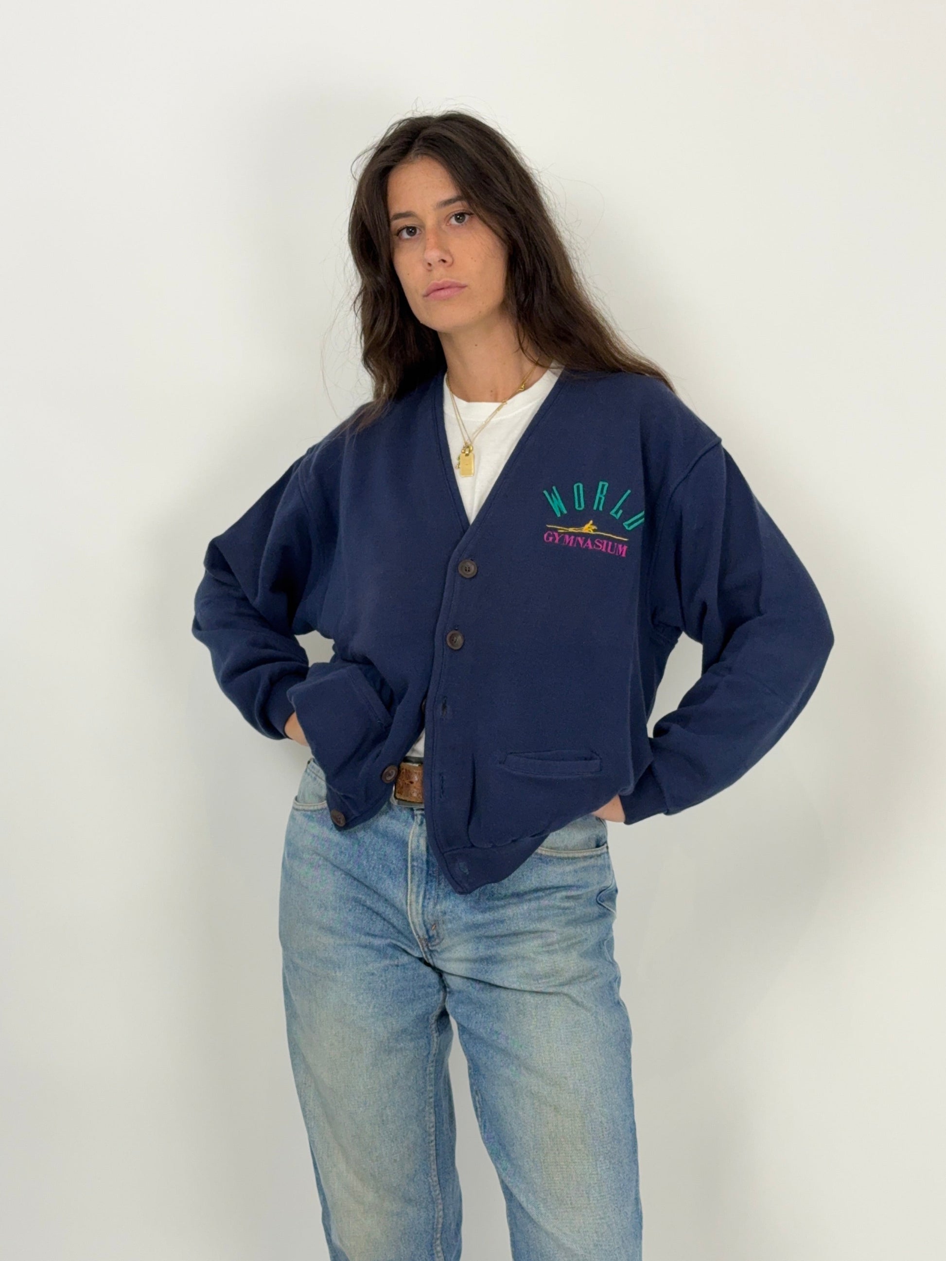 Cardigan felpa “World Gymnasium” anni ’80