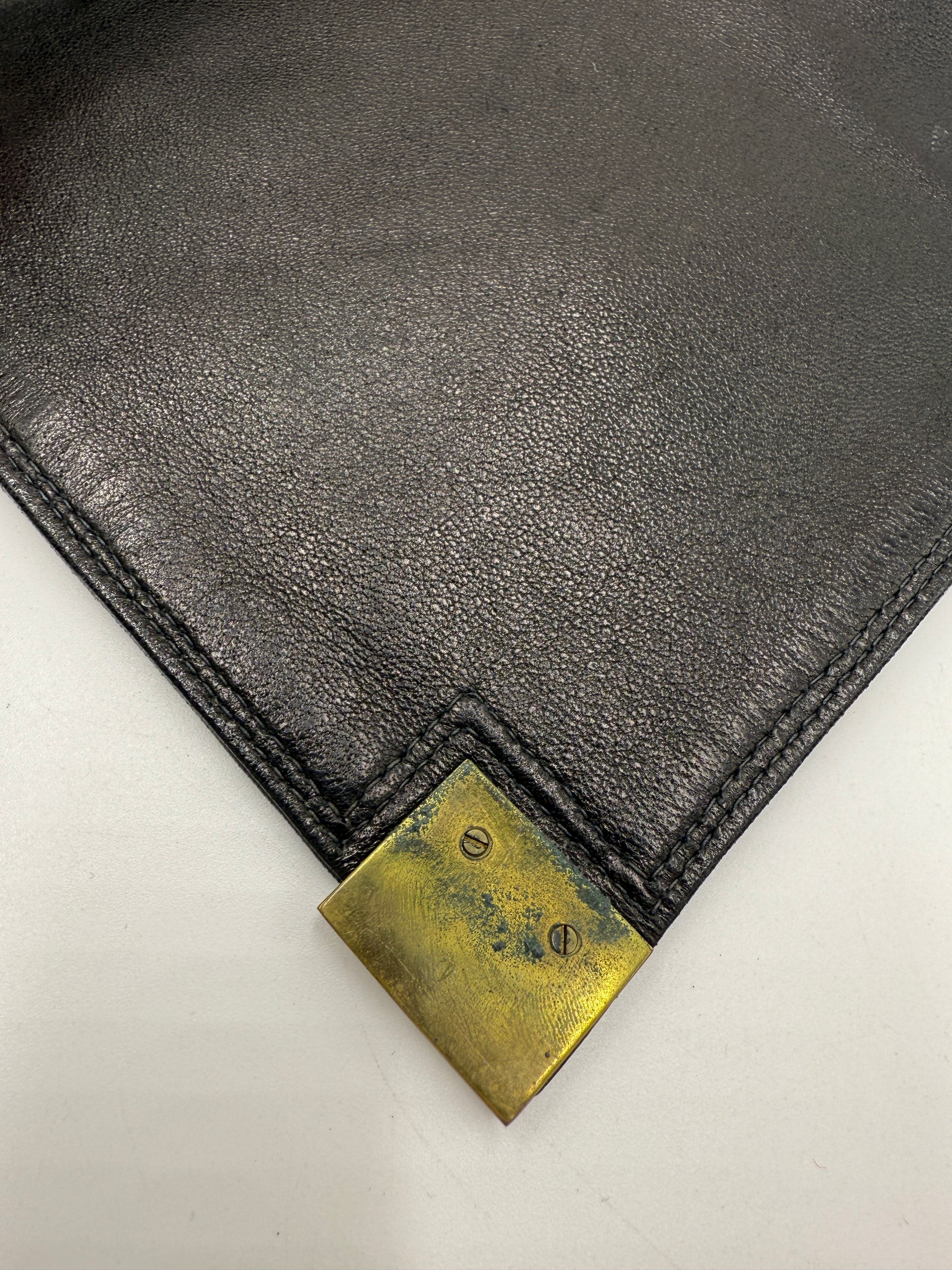 Clutch in pelle nera Jardin des Sacs anni '80