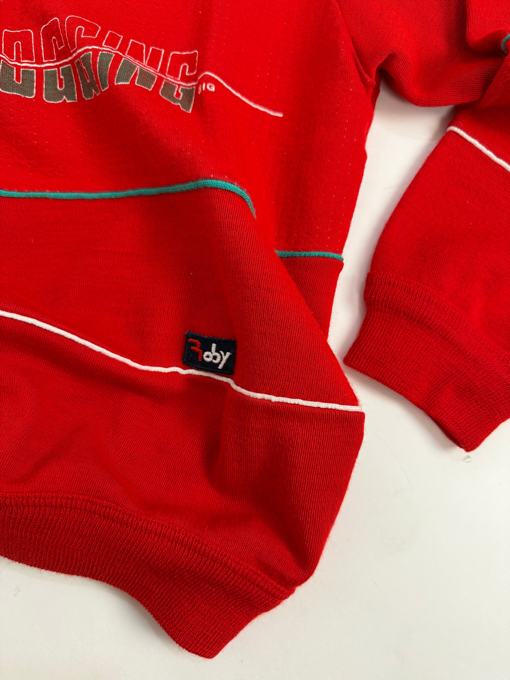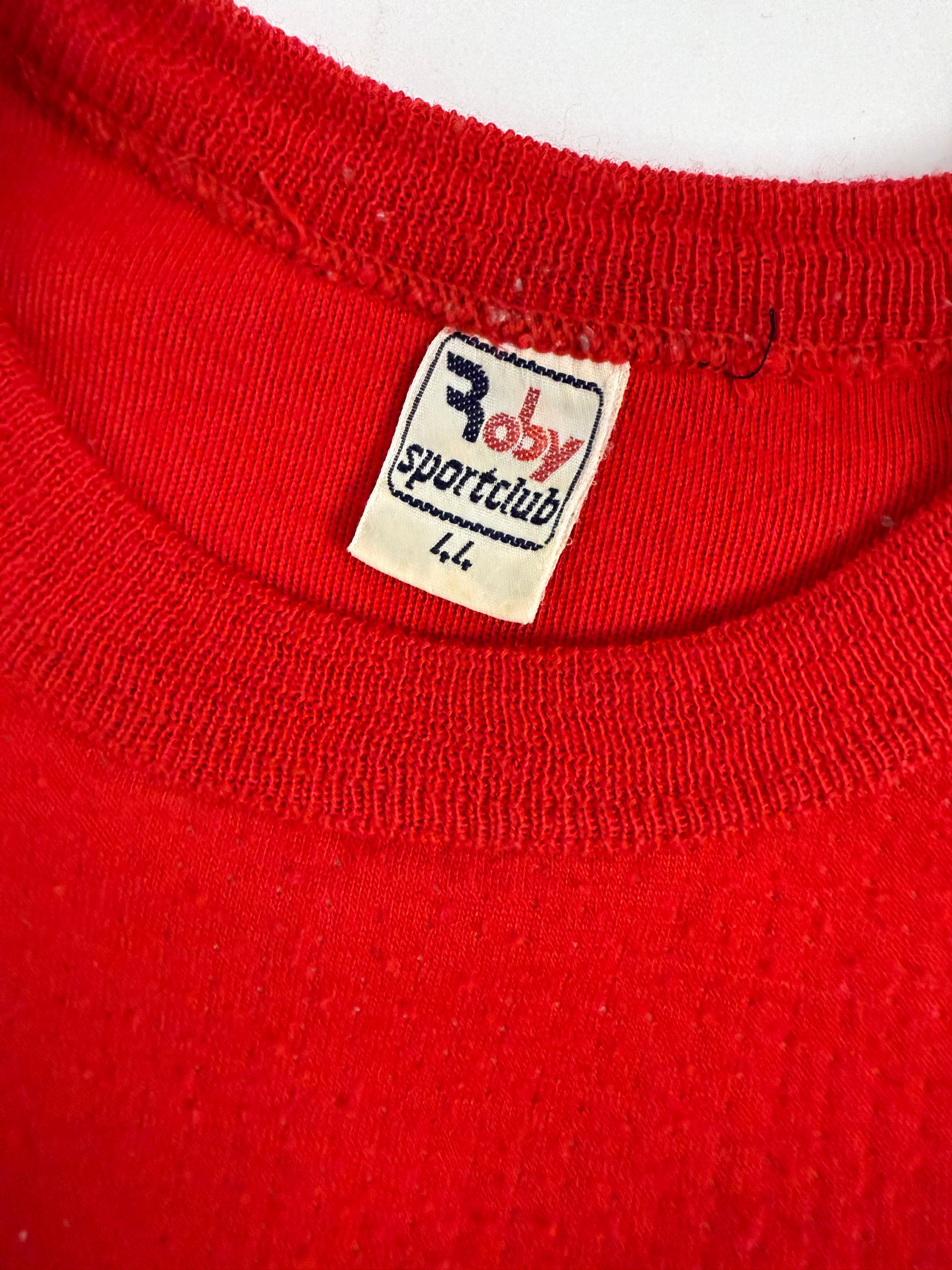 Una felpa che profuma di palestra old-school e week-end casual. Questo modello Roby Sportclub in rosso vivo presenta: