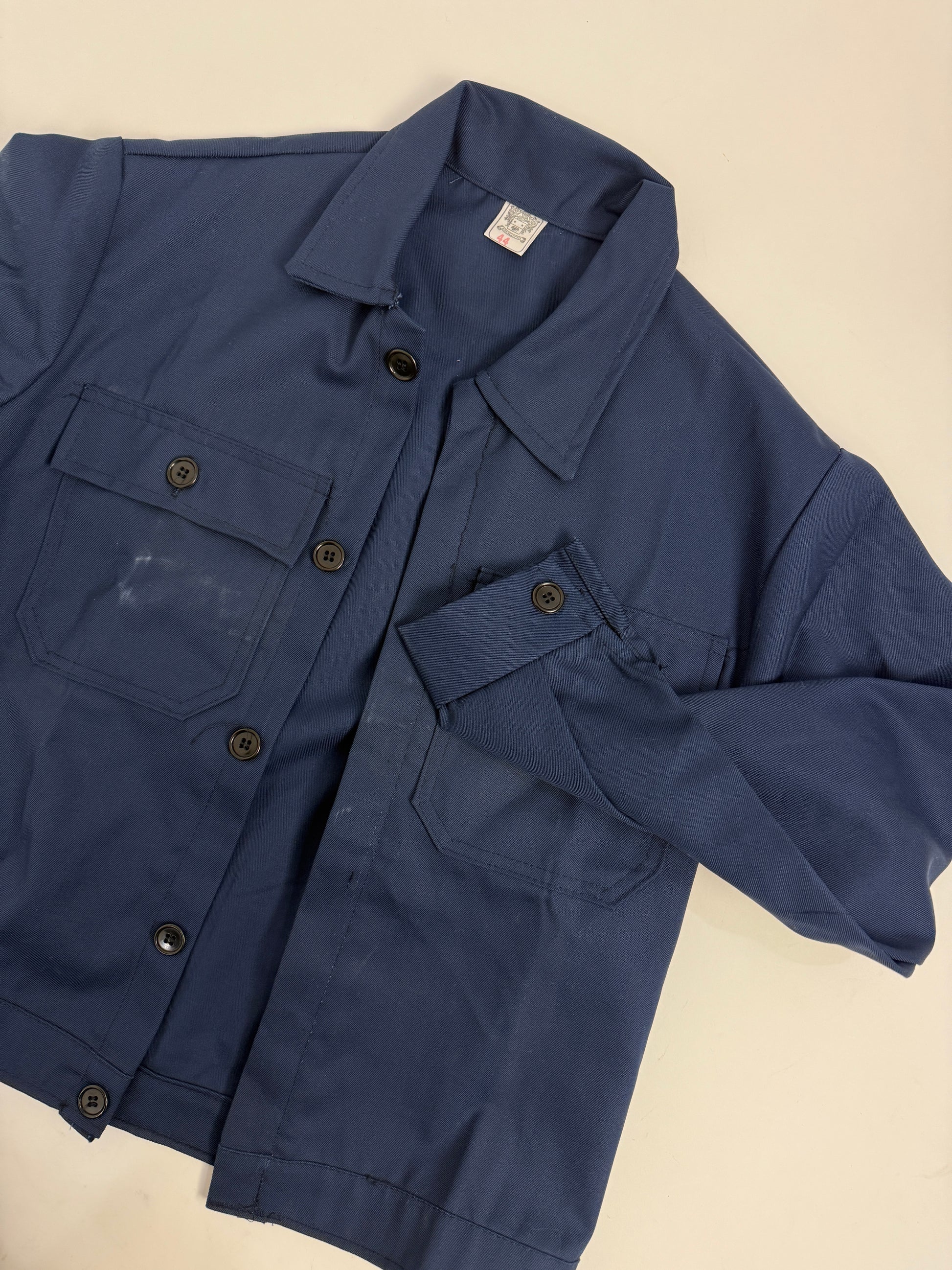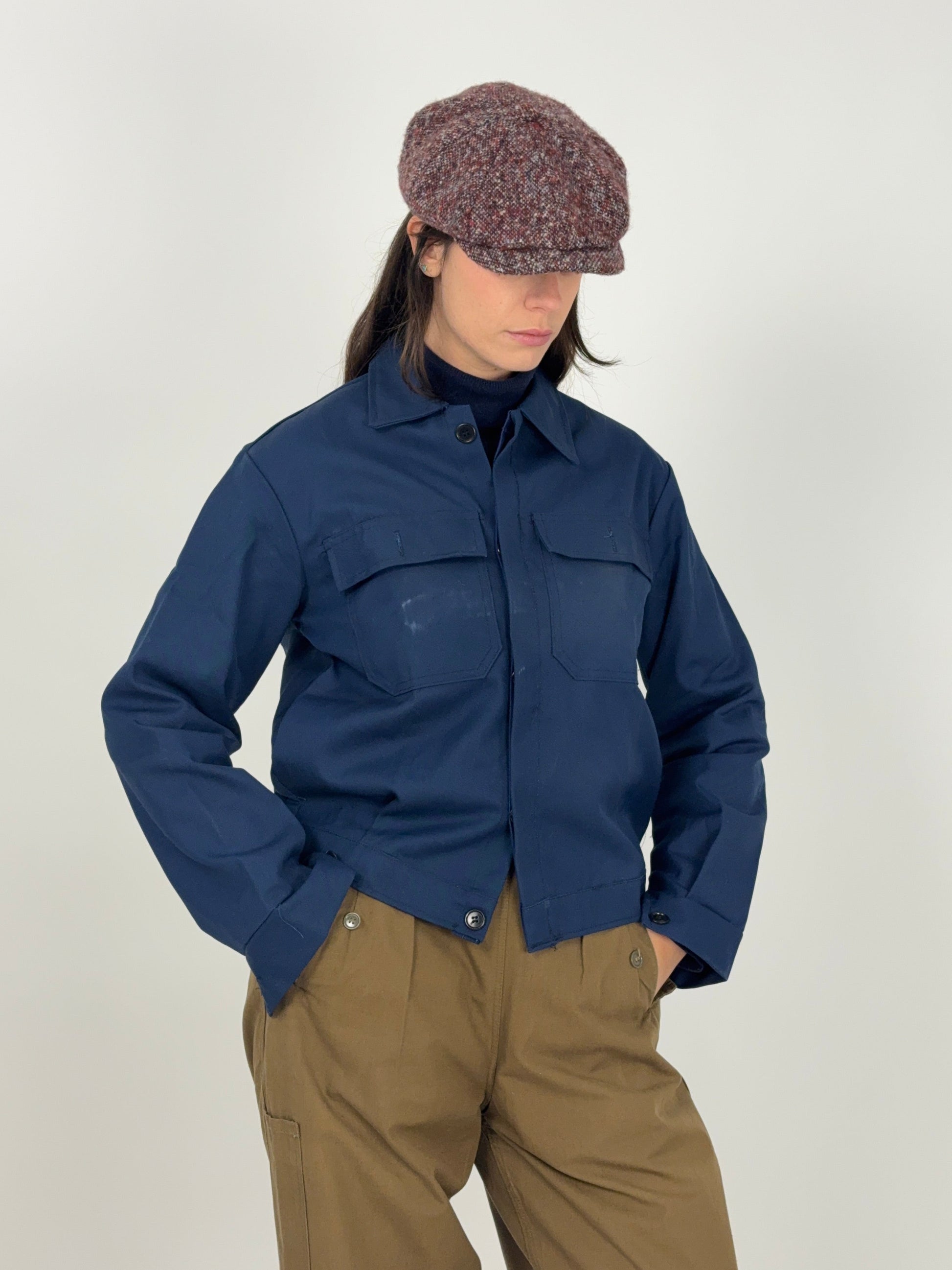 Giacca da lavoro vintage Ancilotto, realizzata in Italia negli anni ’70, è un perfetto esempio di design funzionale e duraturo.