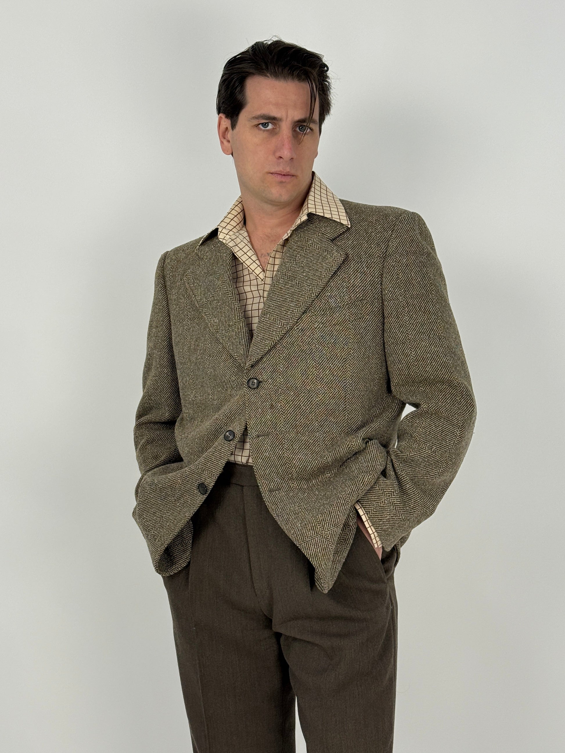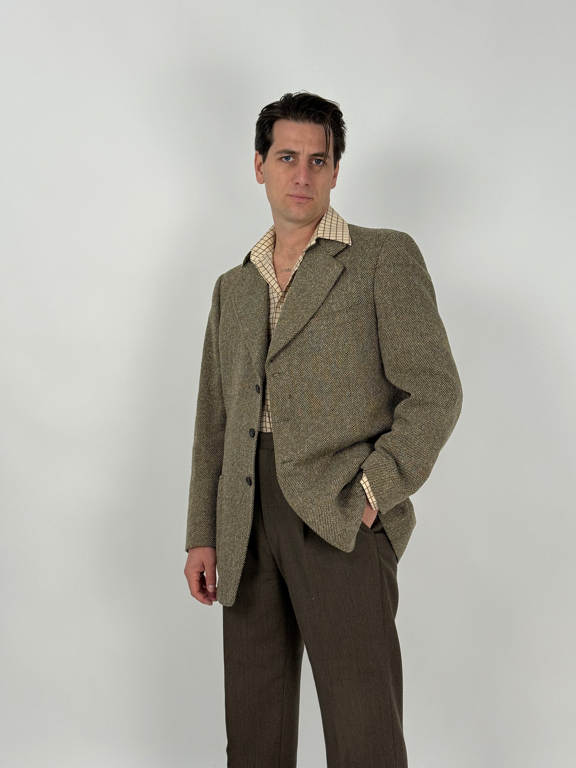 Giacca vintage firmata “Ci Vuole Lebole”, realizzata in pura lana, racchiude tutta l’artigianalità e il fascino delle sartorie toscane dell’epoca.