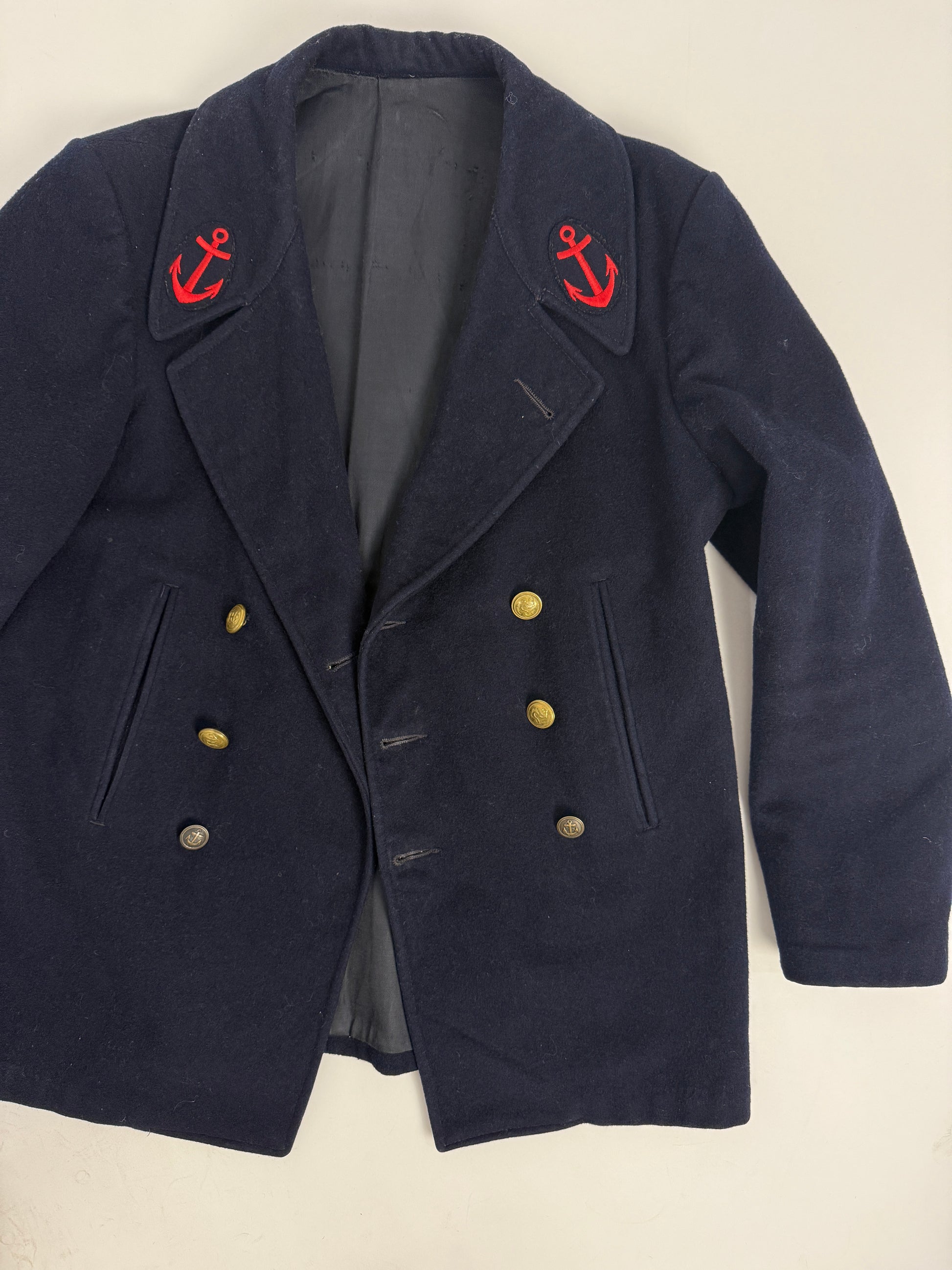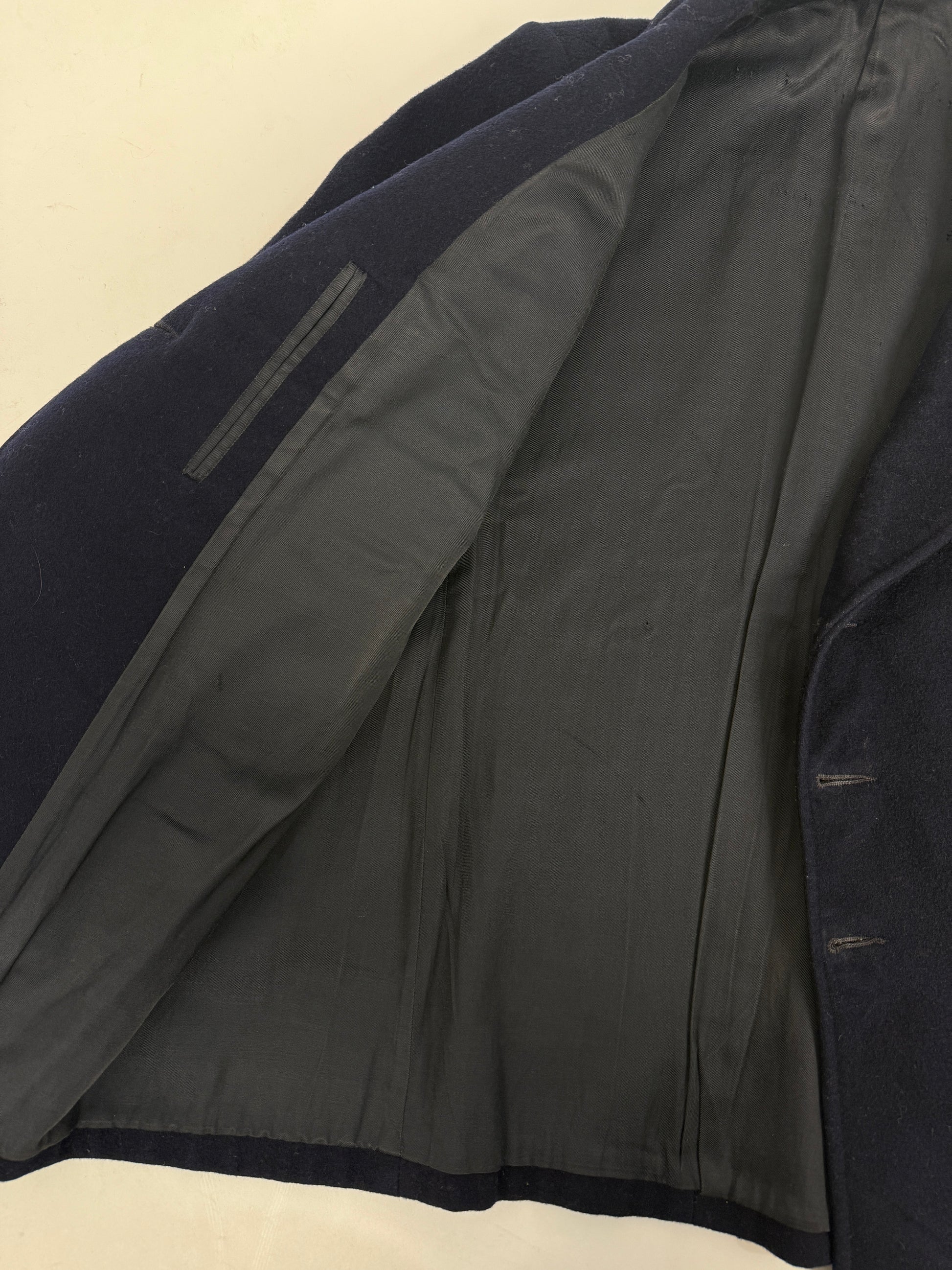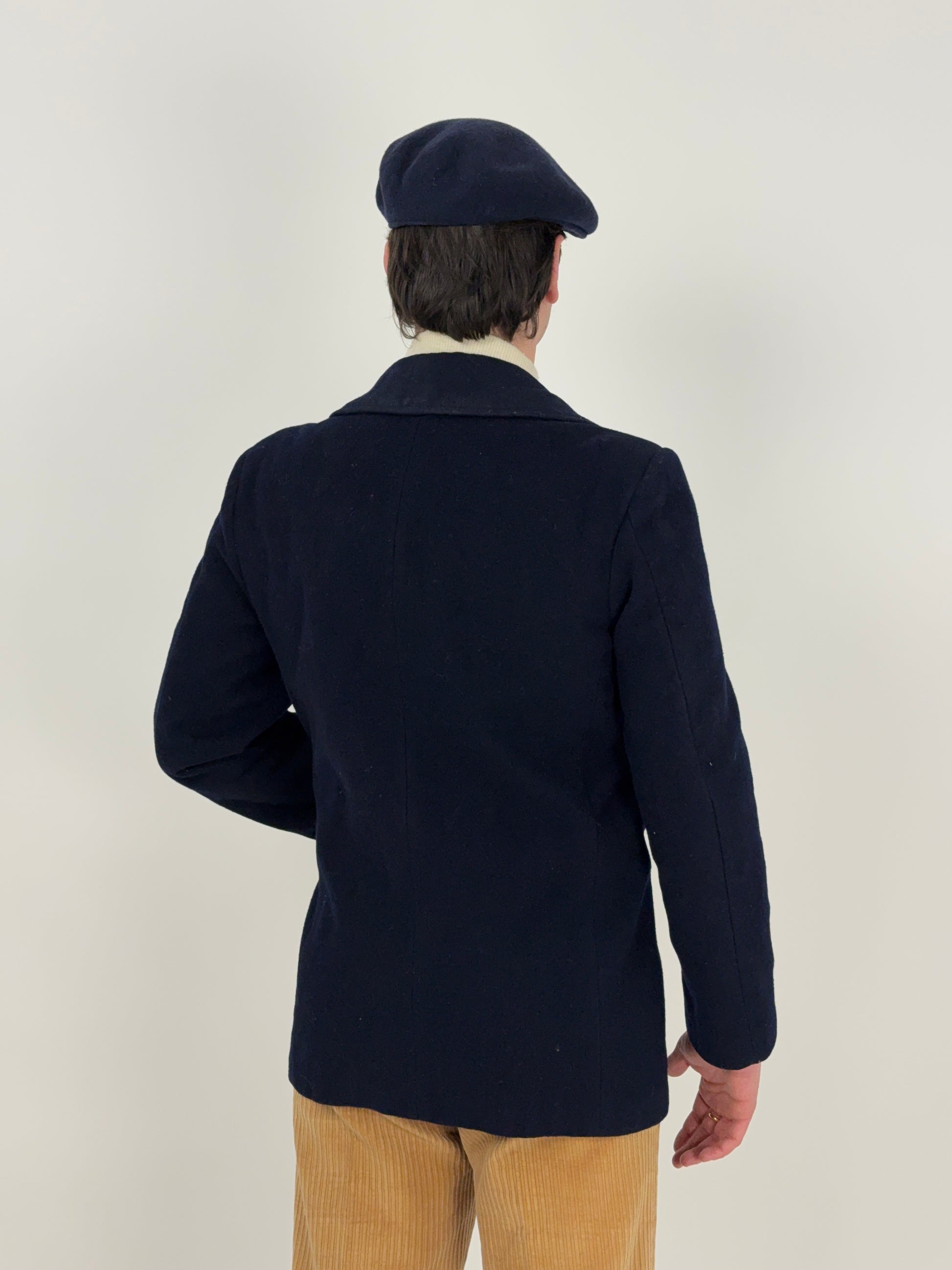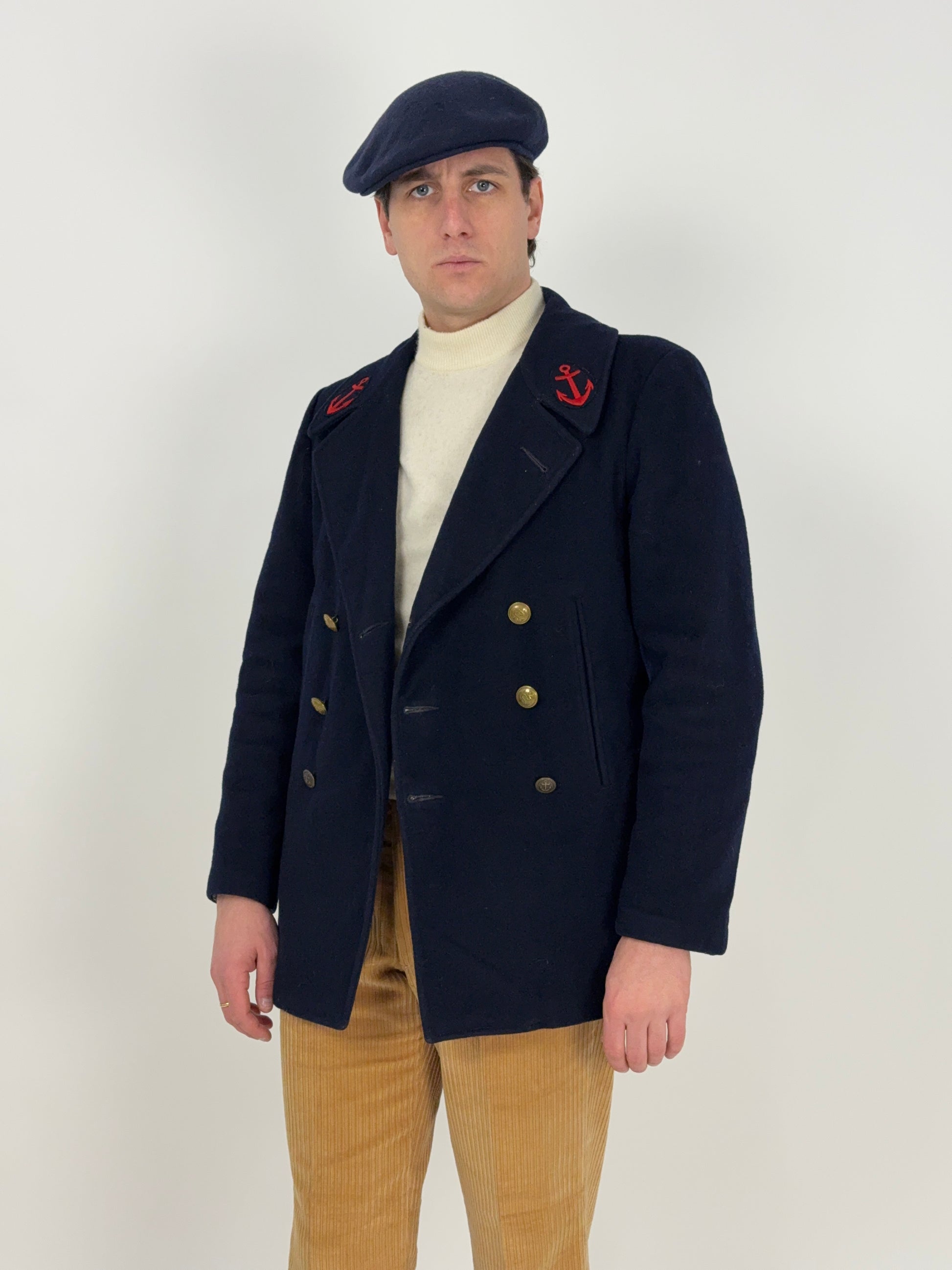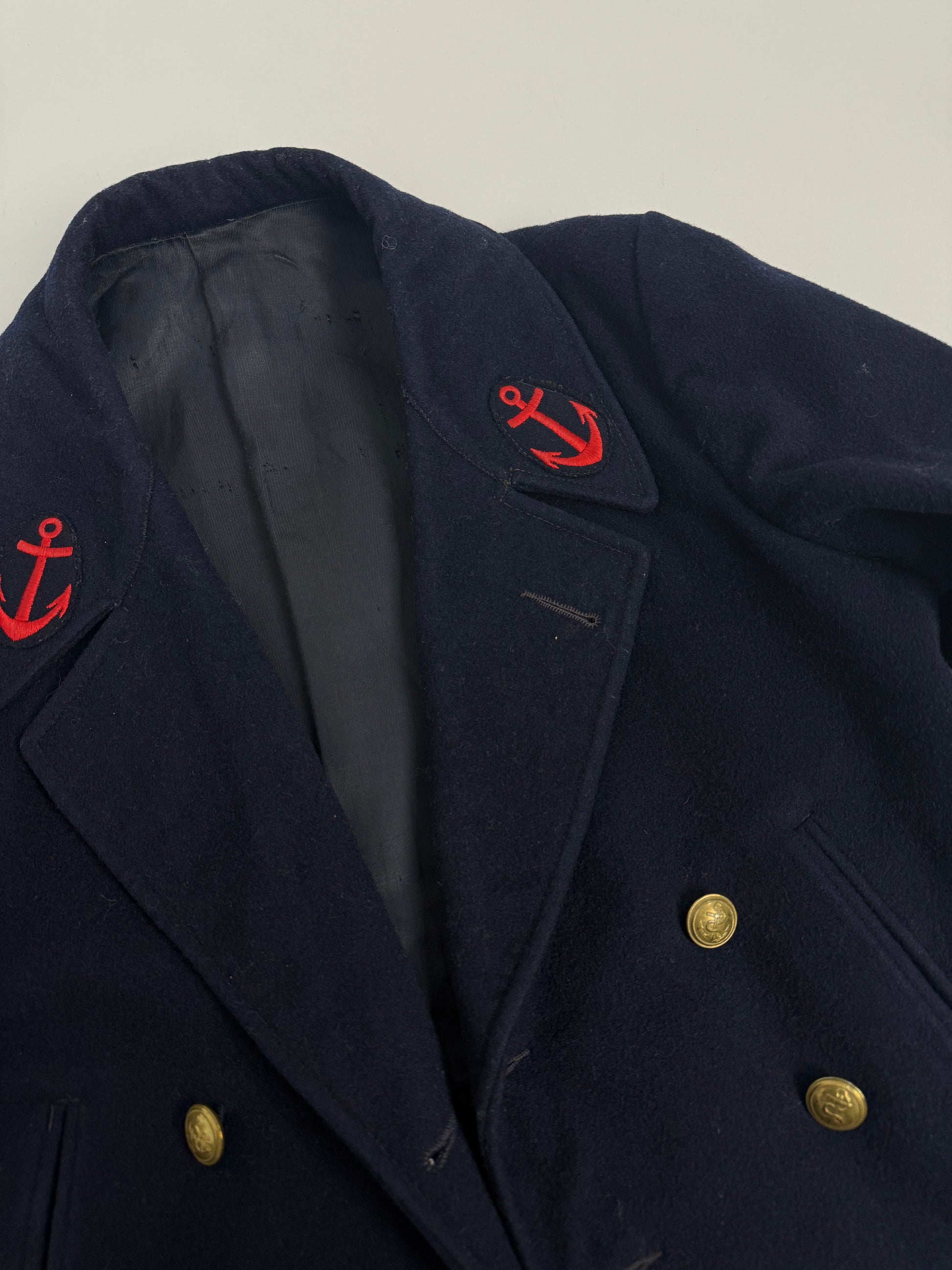 Un doppiopetto della Marine Nationale pensato per stare sul ponte, tagliare vento e umidità, e tenere la forma anche dopo anni di vita vera.
