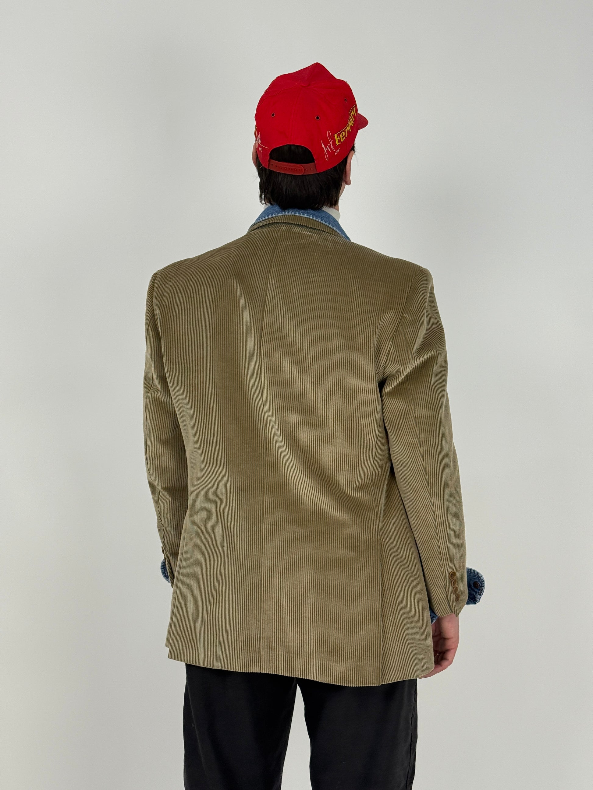 Prodotta in Italia, rappresenta una delle interpretazioni più autentiche del tailoring casual di quell’epoca, quando il velluto era sinonimo di stile raffinato e comfort quotidiano.