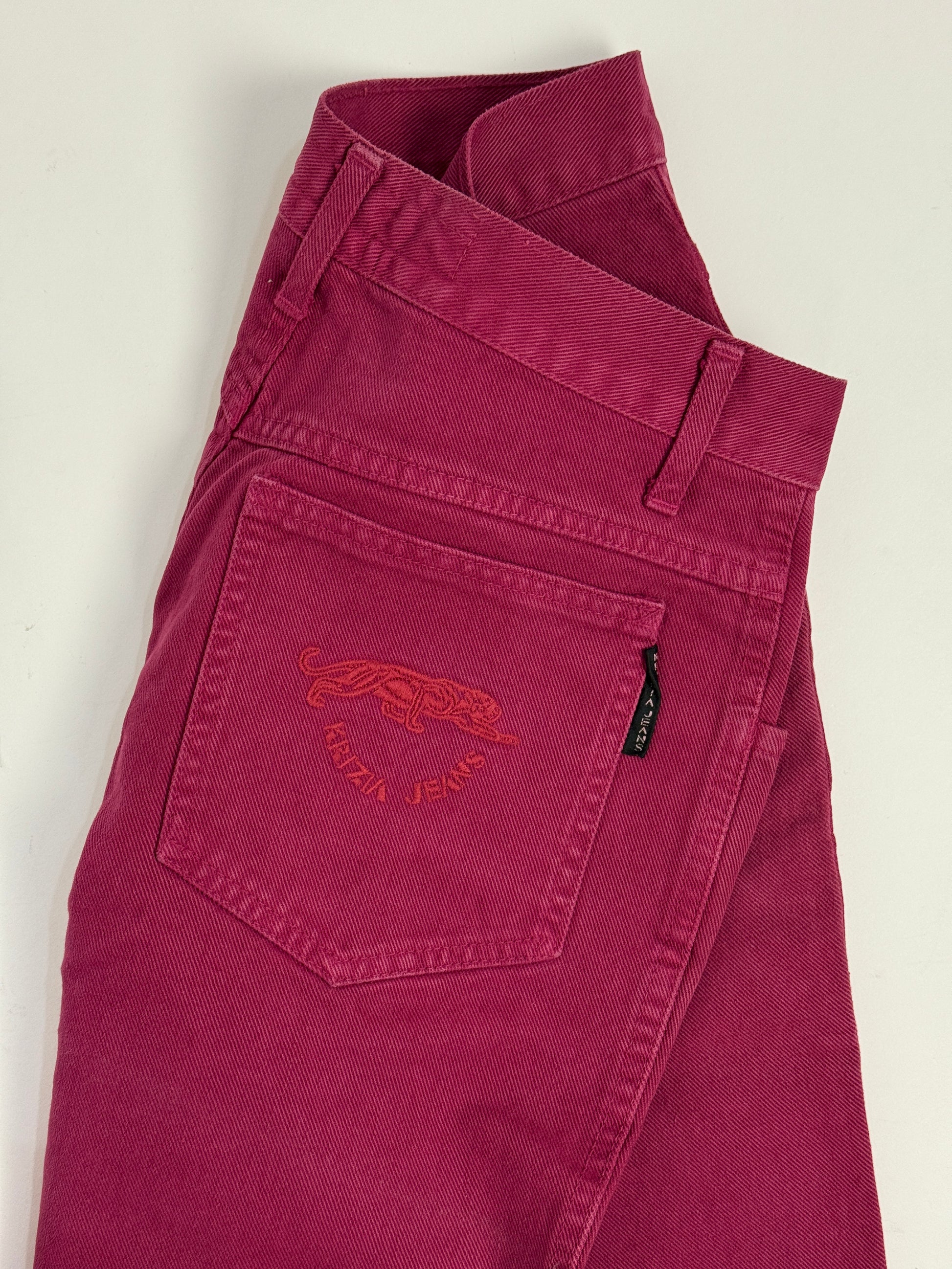 La linea dritta e la vita media raccontano perfettamente quell’estetica pulita e sofisticata che Krizia ha portato nel denim italiano, sempre con un tocco felino e deciso.