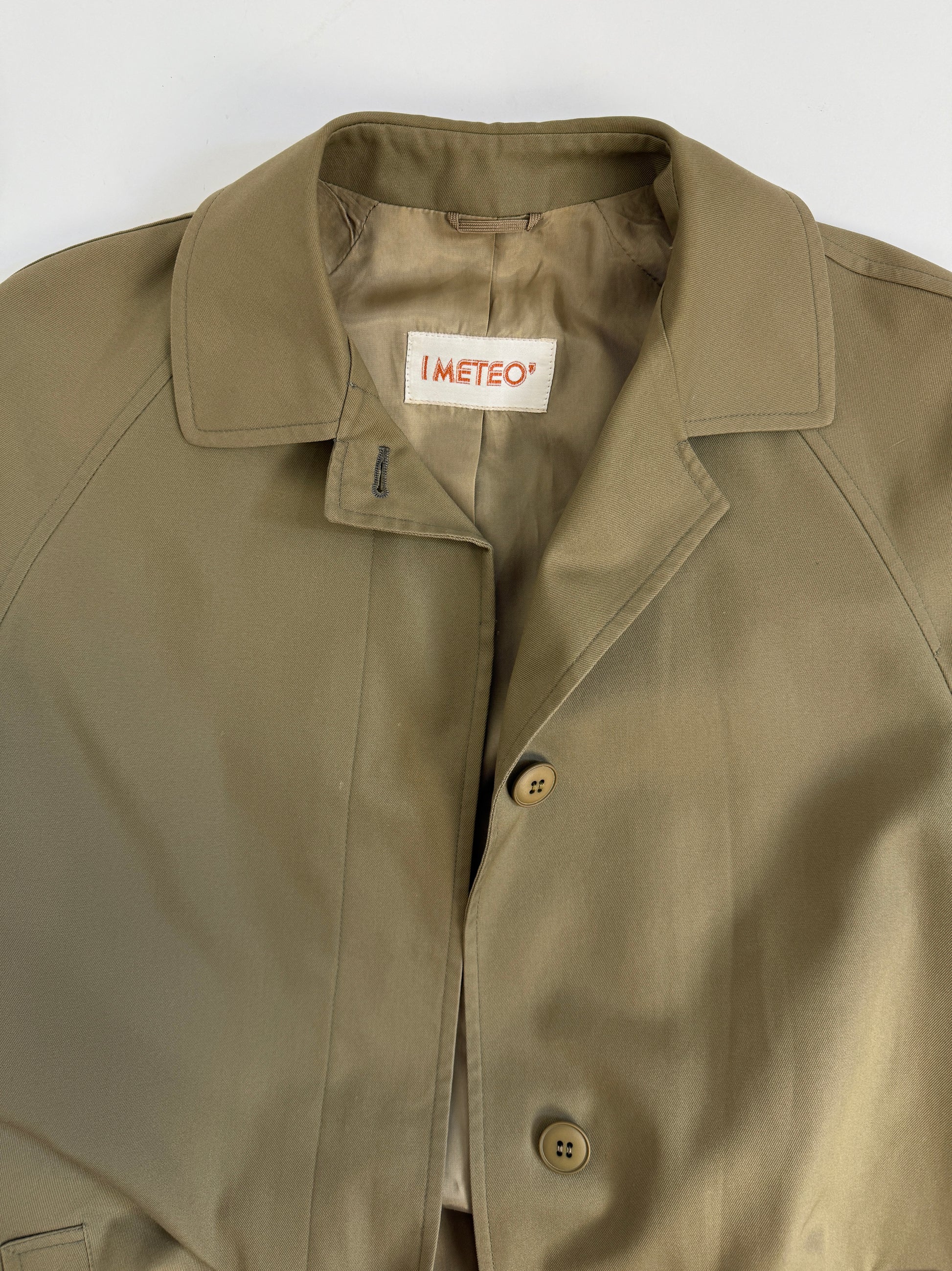 Vestibilità regolare; linea dritta, spalle raglan, bottoni di chiusura e cintura in vita. Tasche laterali, fodera interna e spacco sul retro
