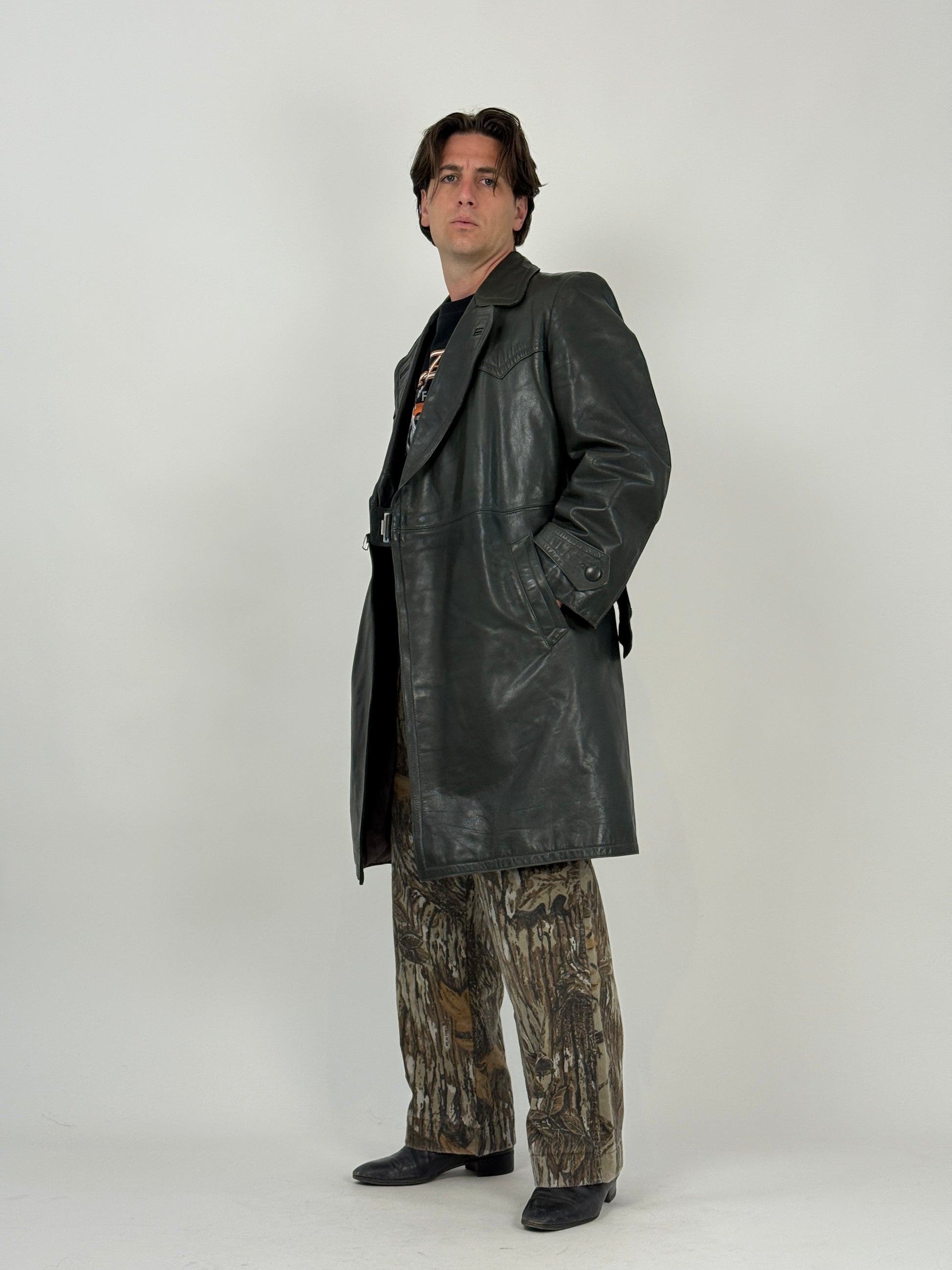 Negli anni '60, quando le città tedesche rifiorivano tra luci al neon e strade bagnate di pioggia, questo trench in pelle verde accompagnava gli agenti della Polizia durante i turni serali, sopra l'uniforme e sotto il cielo freddo.Oggi porta con sé quella stessa aura: indossarlo significa entrare in una storia fatta di disciplina e cura dei dettagli