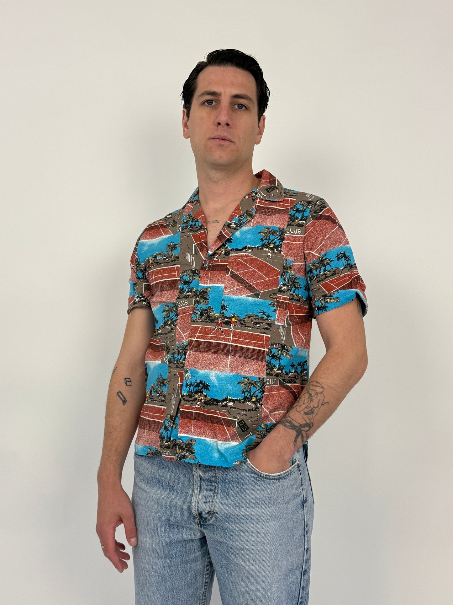 Camicia a manica corta vintage, abbottonatura frontale, realizzata in cotone