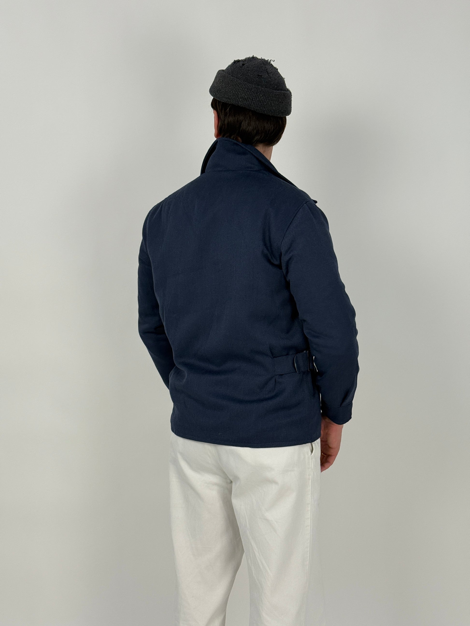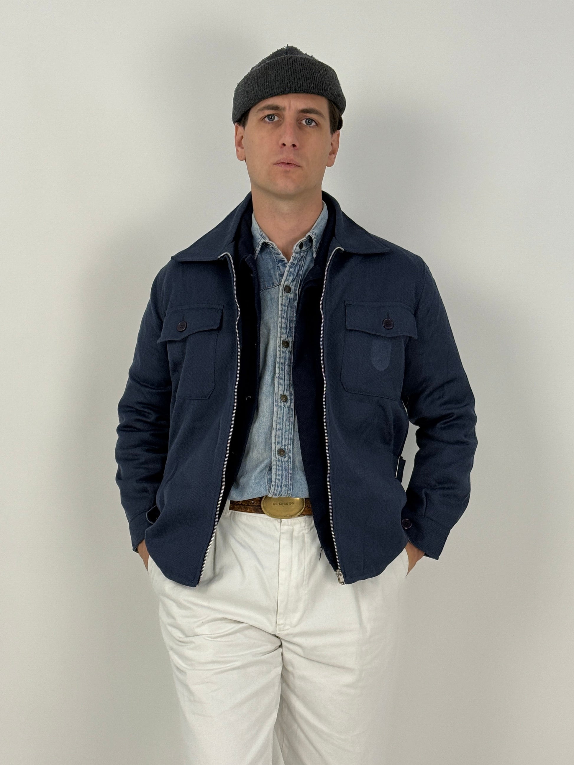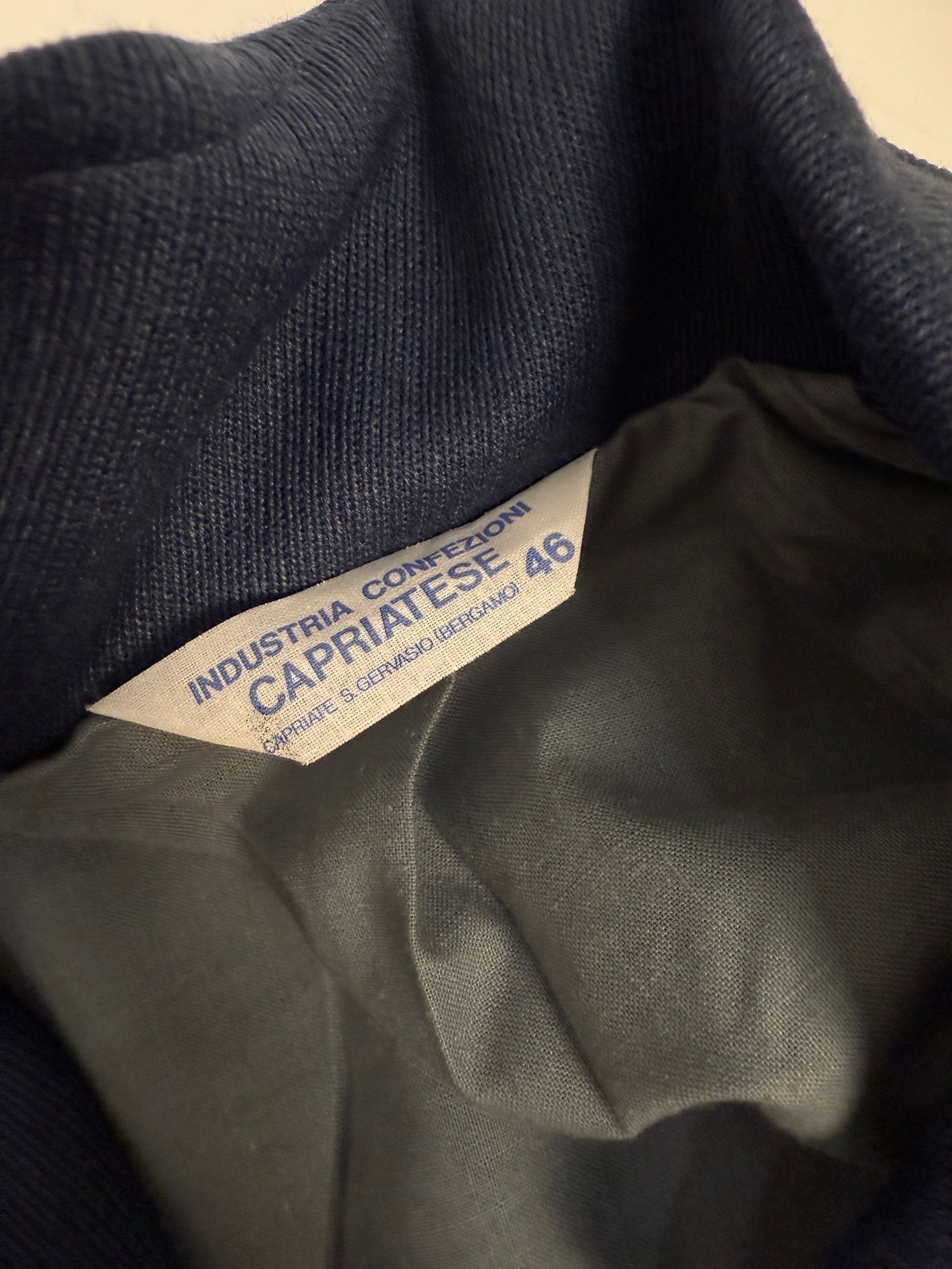 Questa giacca da lavoro vintage blu rappresenta l’essenza del workwear italiano: resistente, essenziale e incredibilmente elegante nella sua semplicità.