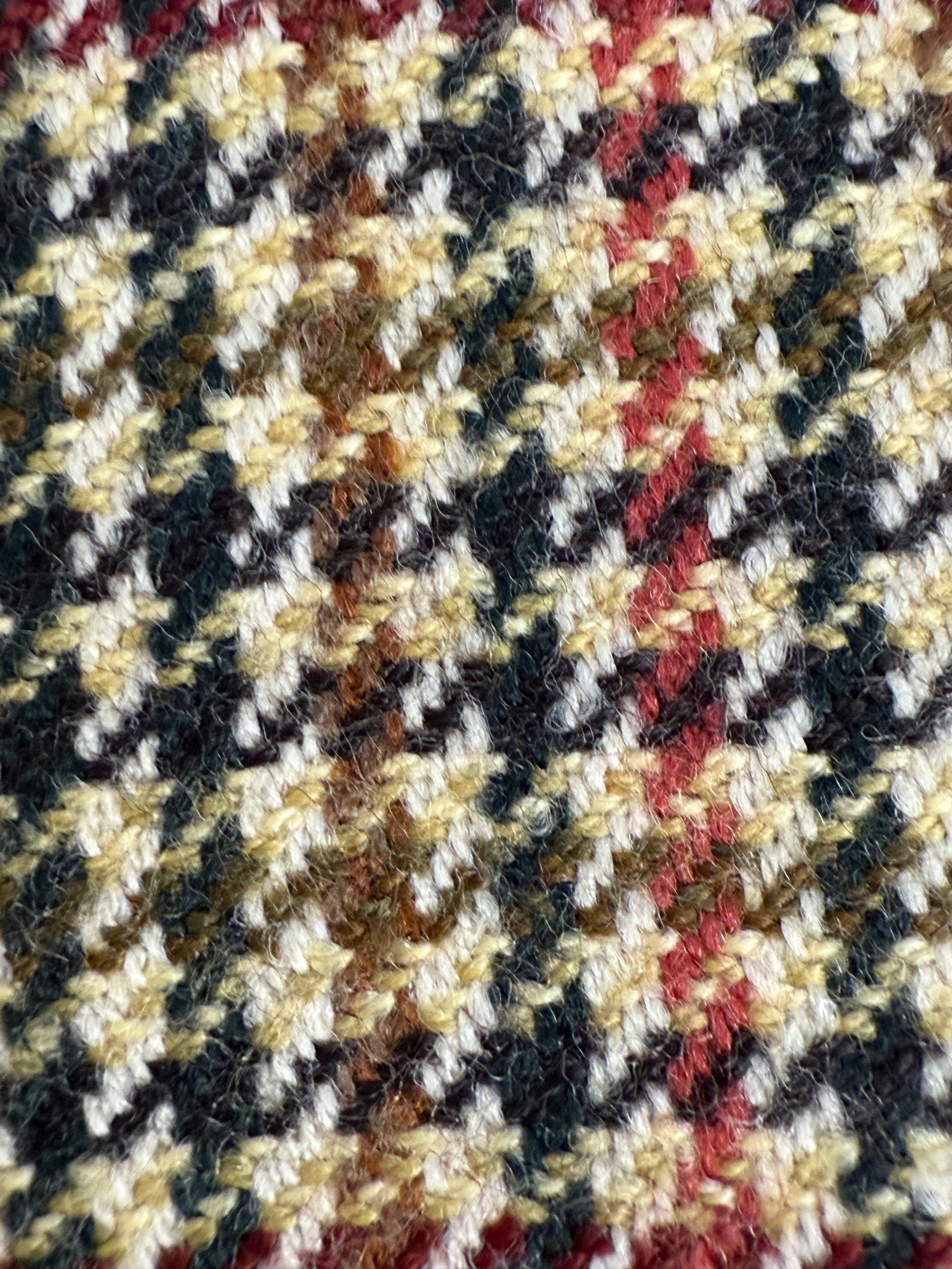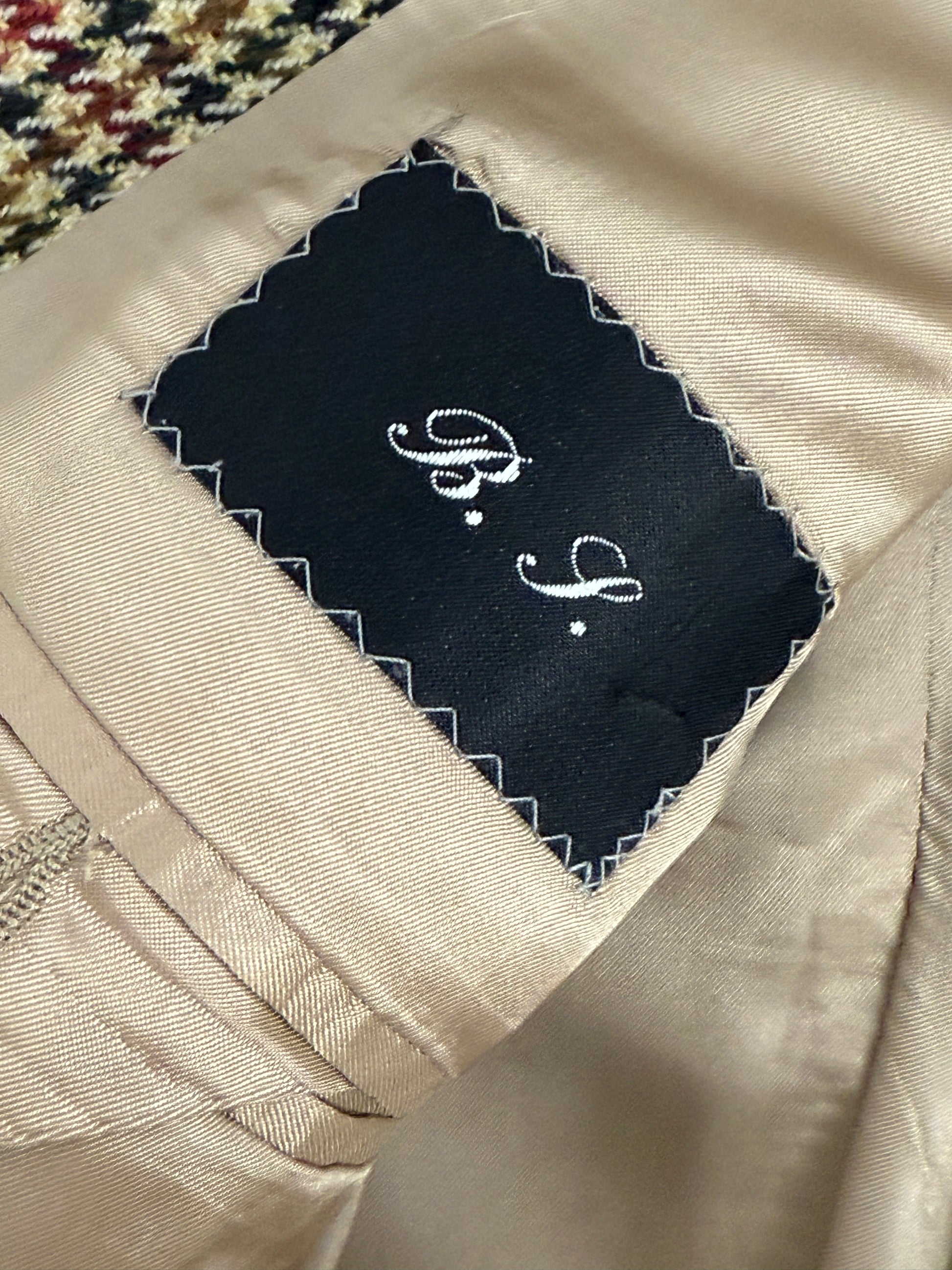 Il tessuto pied de poule beige/bordeaux, arricchito da tocchi di verde bosco, racconta la tradizione sartoriale di fine Novecento, quando la qualità veniva prima di tutto e una giacca doveva durare una vita.