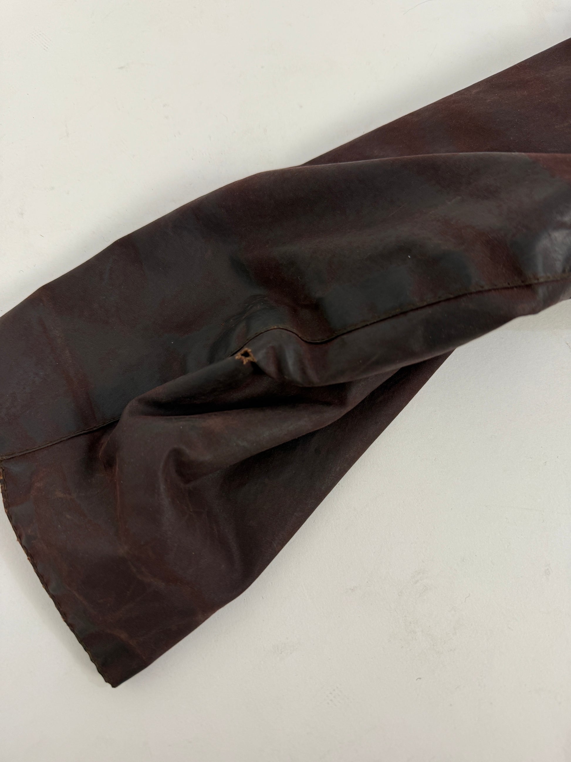 Il capo si presenta in buone condizioni generali, con naturali segni del tempo coerenti con l’età e l’utilizzo. Sono presenti piccole usure e lievi strappi localizzati, tipici dei Barbour vintage e facilmente risolvibili tramite intervento di rewaxing e ripristino sartoriale, operazioni comuni per questo tipo di giacche.
