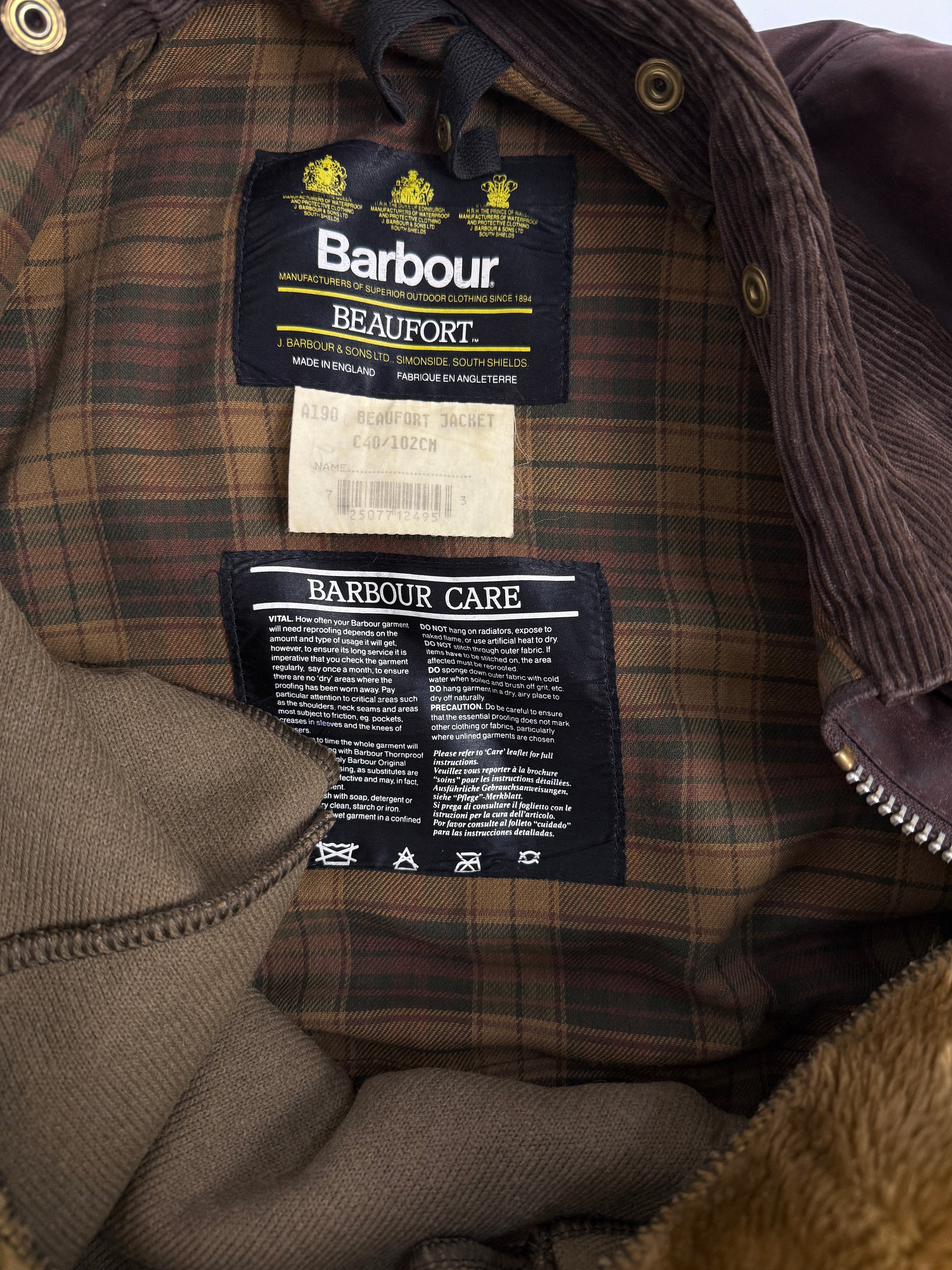 La presenza del lining interno in acrilico la rende una versione più calda e strutturata, pensata per affrontare freddo, pioggia e vento senza compromessi. Il colletto in velluto a coste, la zip originale Barbour, le tasche a soffietto e la classica tasca posteriore raccontano una funzionalità vera, non estetica.