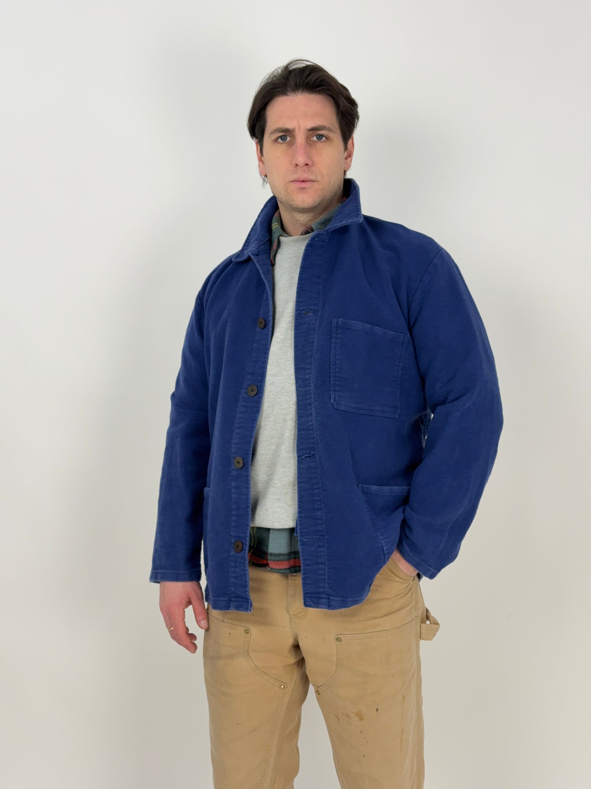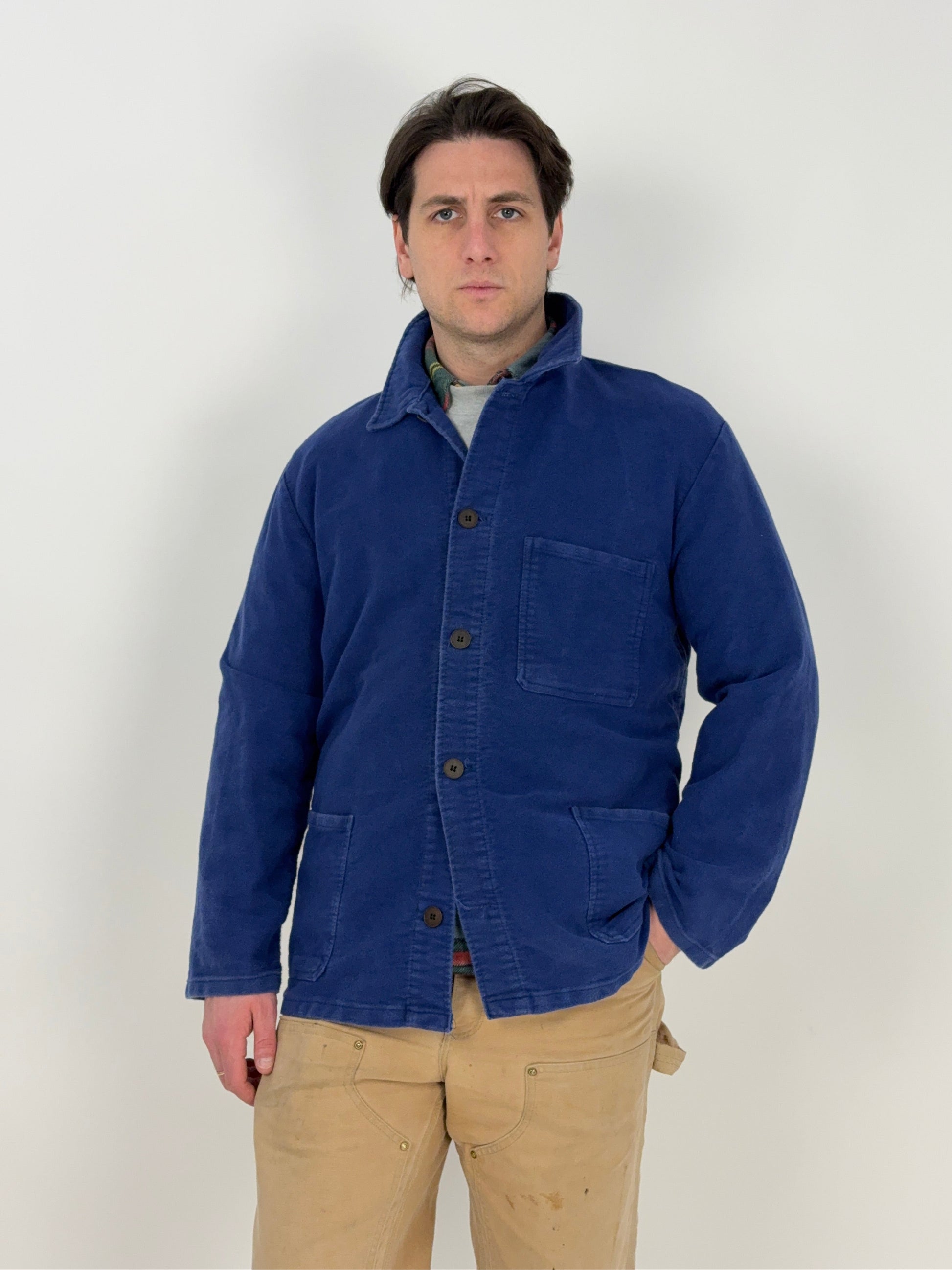 Giacca da lavoro in cotone pesante, espressione autentica del workwear italiano. Tessuto esterno a trama fitta garantisce robustezza senza rigidità, mentre l'interno in cotone garzato assicura calore e traspirabilità per lunghe giornate di utilizzo. Il blu de travail profondo sviluppa naturalmente variazioni tonali attraverso l'usura reale e i lavaggi, creando una patina genuina nel tempo. Taglio dritto funzionale, abbottonatura frontale e tre tasche pratiche. Costruita per proteggere, resistere e invecchiare con dignità, rappresenta la qualità costruttiva della tradizione artigianale italiana.
