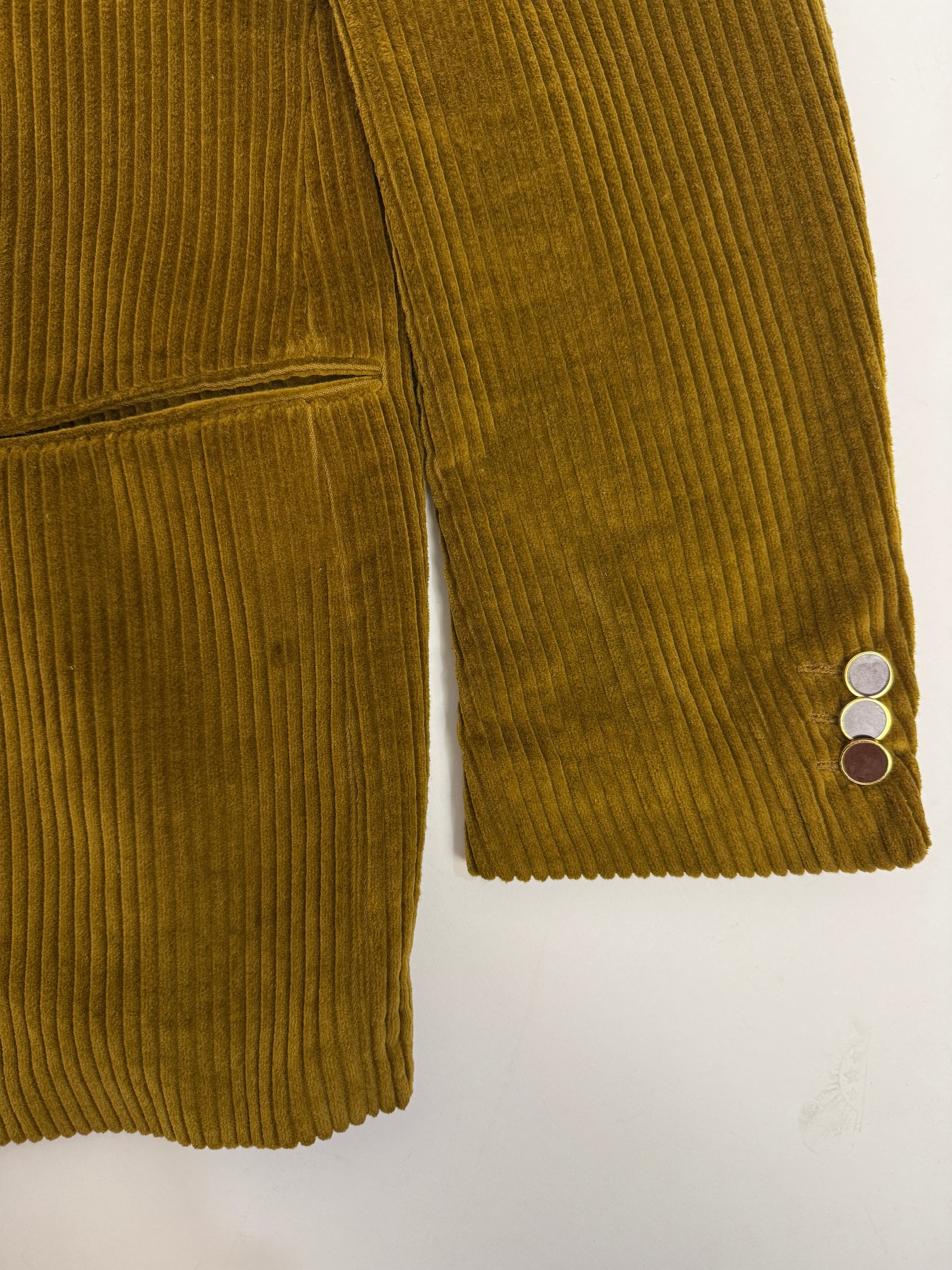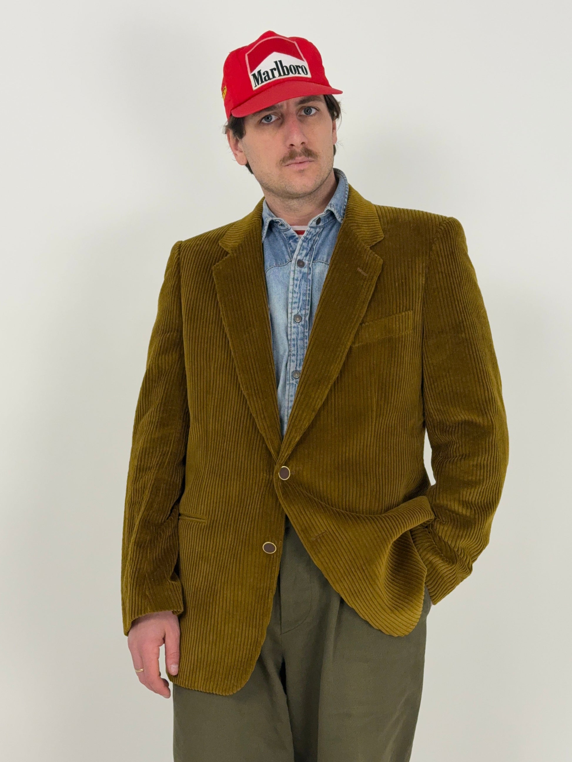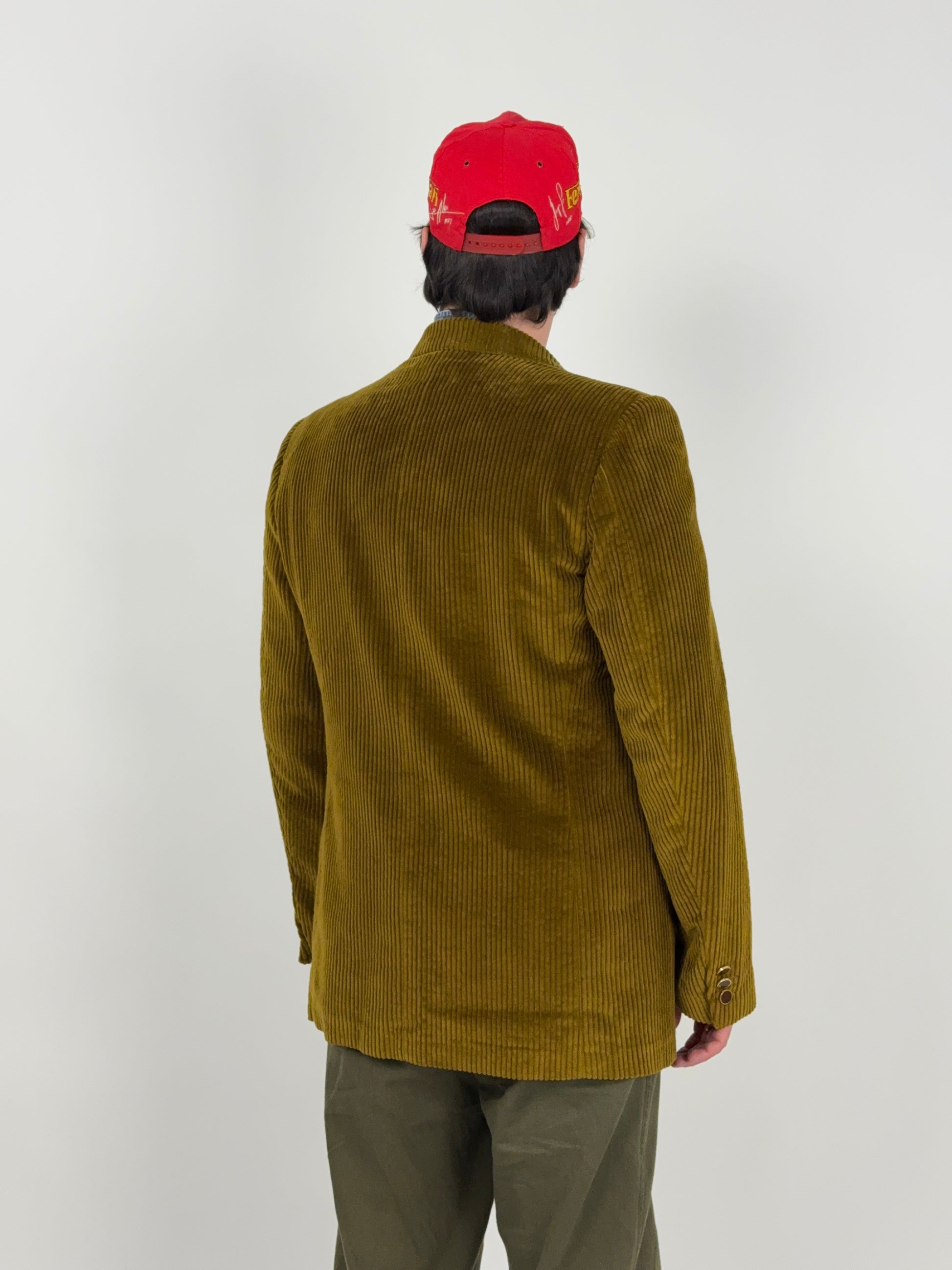 Velluto a coste largo, colore ocra pieno stile anni ’80/’90 e volume perfetto