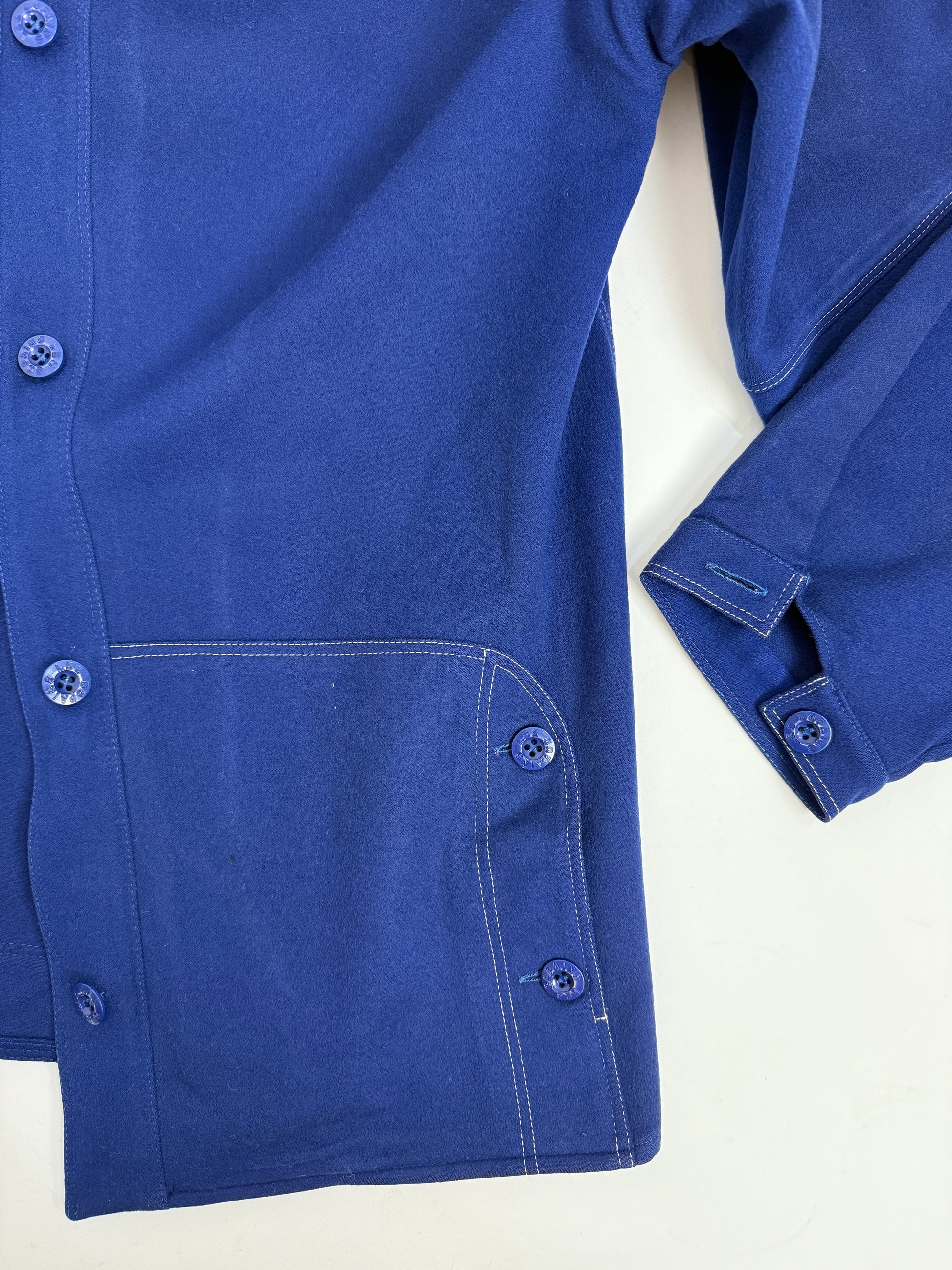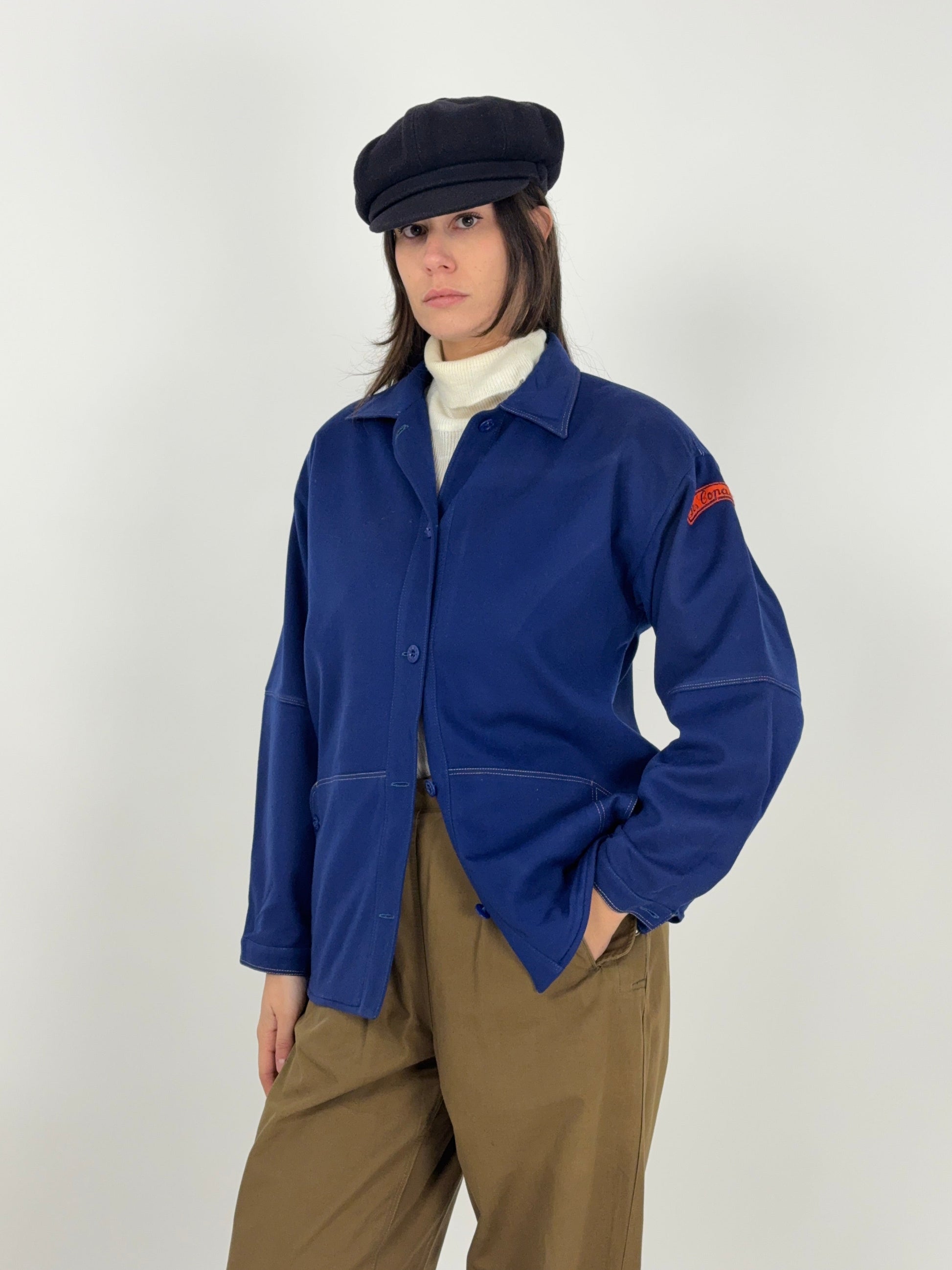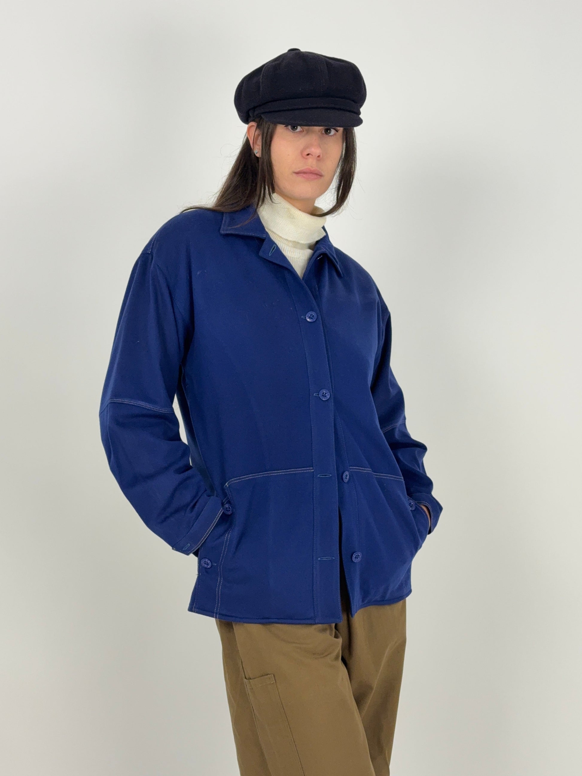 Una giacca vintage Les Copains in pura lana blu, autentico Made in Italy e simbolo di quella qualità sartoriale che il brand ha sempre incarnato.
