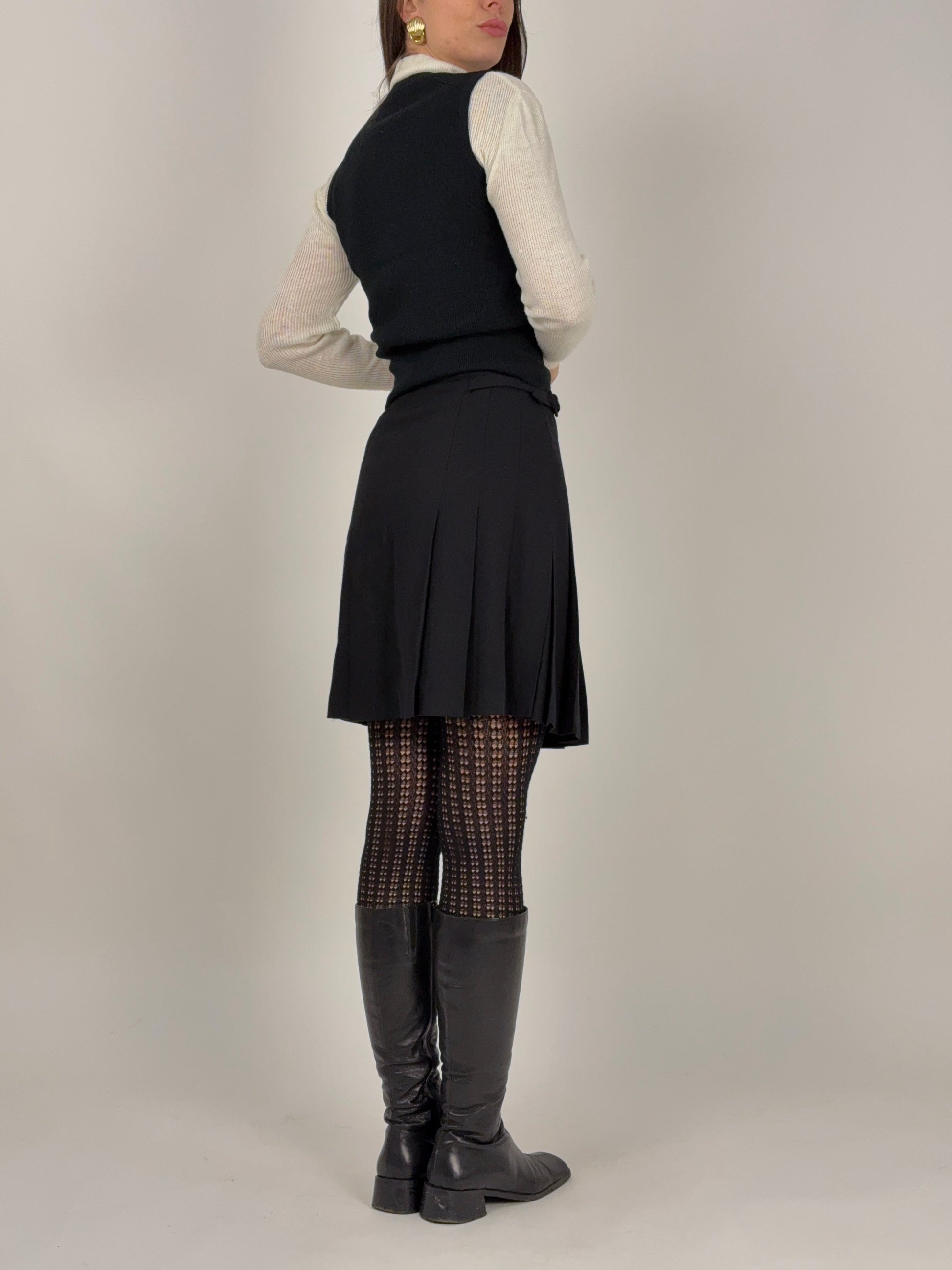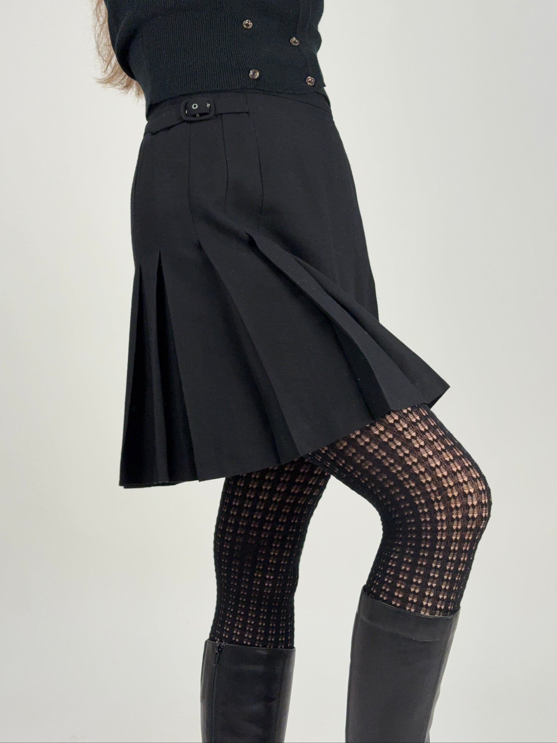 Taglio pulito ed elegante, la piega strutturata dona movimento, slancia la figura e mantiene quell’allure scolastica-chic che oggi è diventata cult.