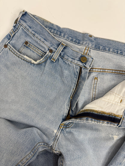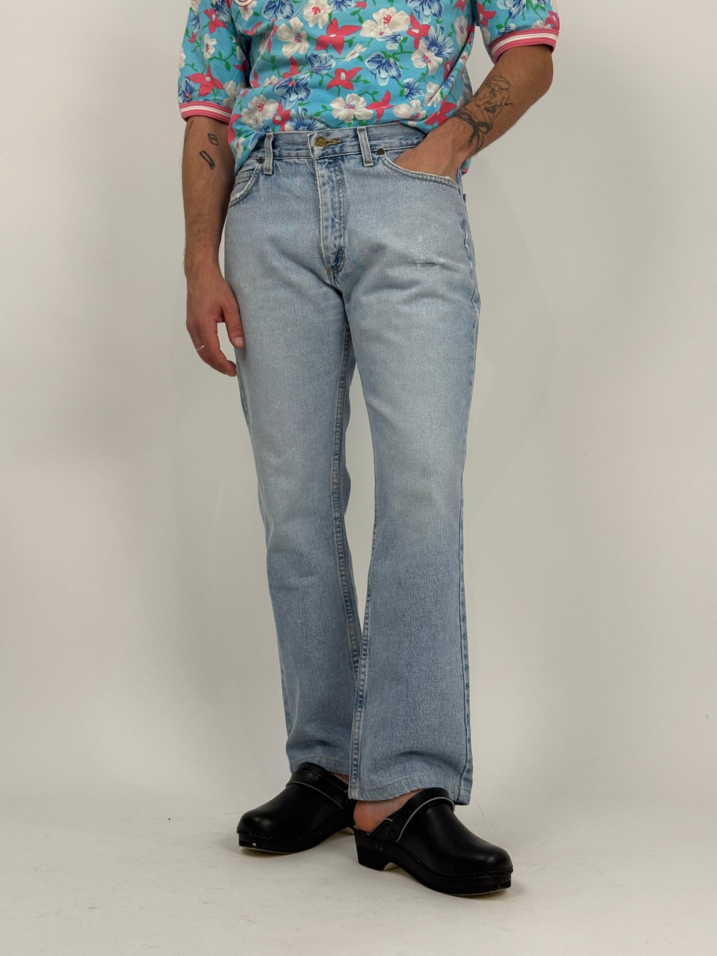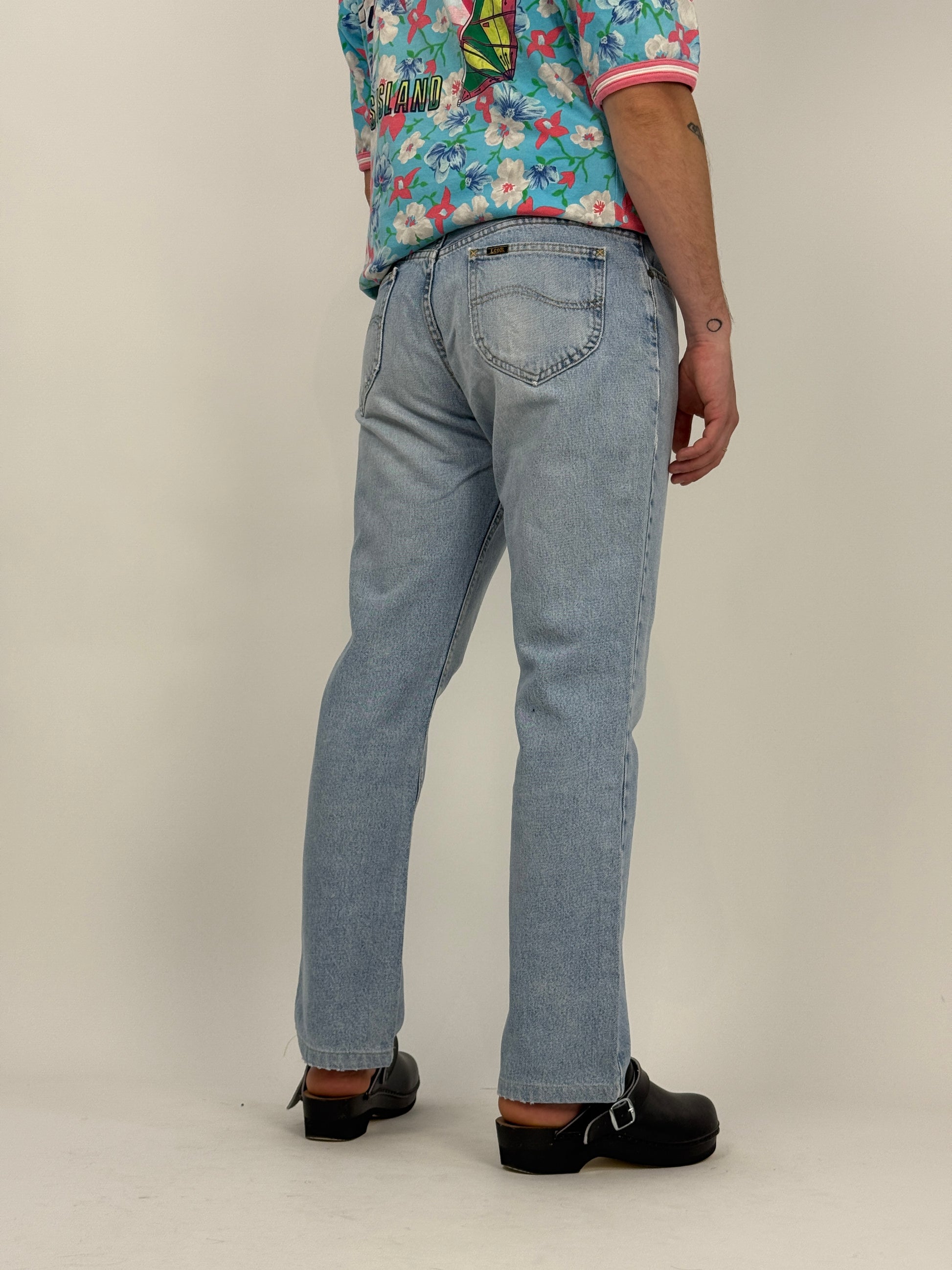 Scopri il fascino senza tempo dei jeans Lee vintage da uomo vintage, realizzati in denim di cotone robusto con lavaggio chiaro. Questo modello iconico si distingue per la vita alta ed il taglio dritto, ideale per chi ama uno stile casual ma ben definito.